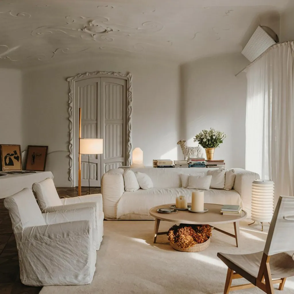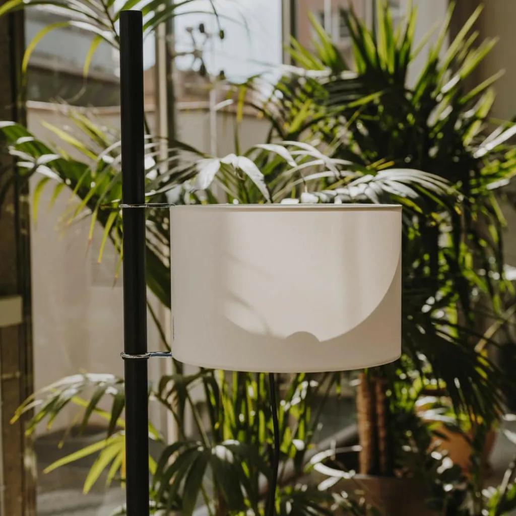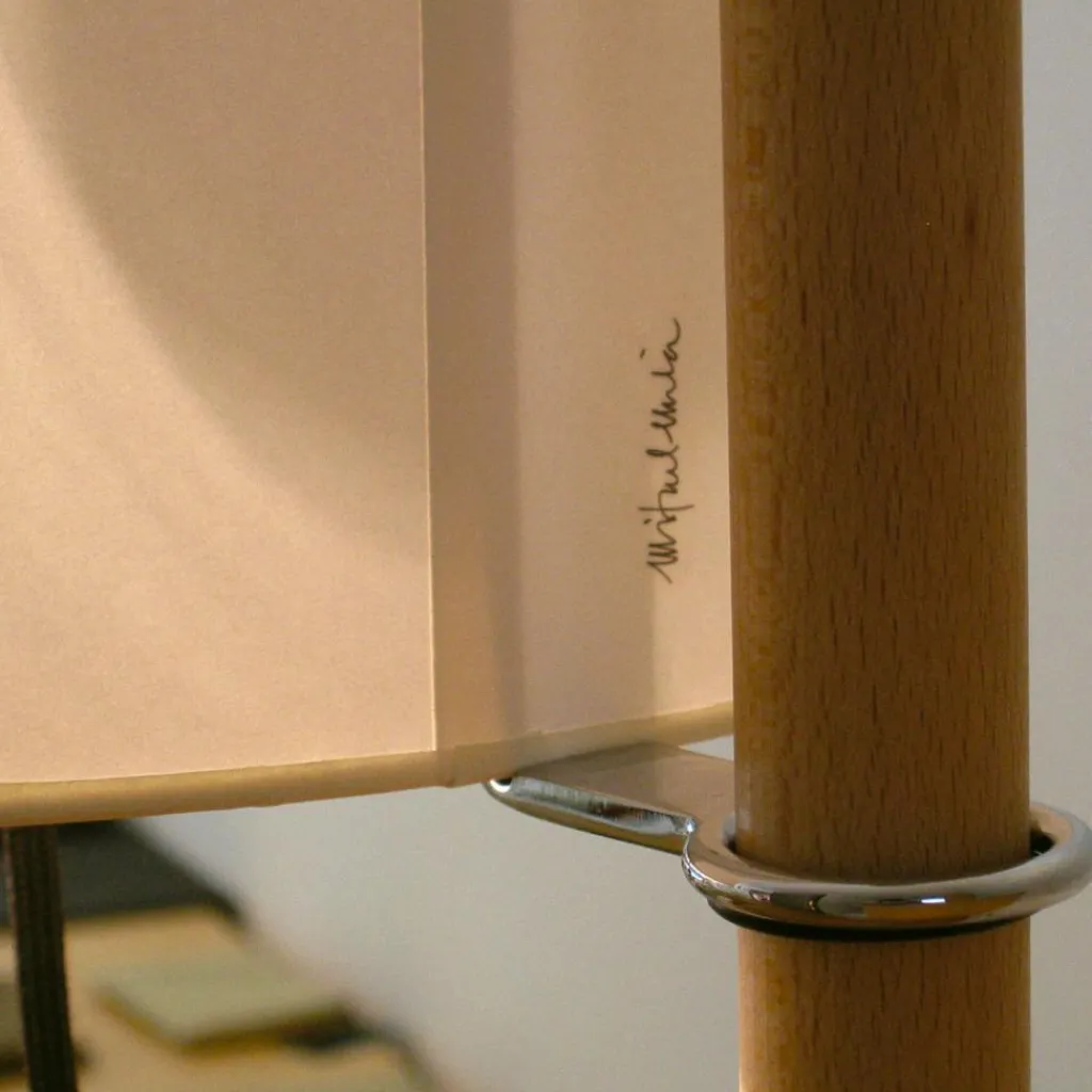 Der Lampenschirm der Santa & Cole TMM Stehleuchte besteht aus durchscheinendem, festem Papier. Der Durchmesser beträgt 30 cm, die Höhe 20 cm, eine ideale Form, um warme Lichtatmosphäre zu erzeugen. An einer Stelle vom Schirm findet man die Signatur des berühmten Designers Miguel Milá. Seine Vision ist, den Alltag der Menschen zu verbessern durch außergewöhnliche Funktionen und hohe Qualität seiner Möbel und Lampen.