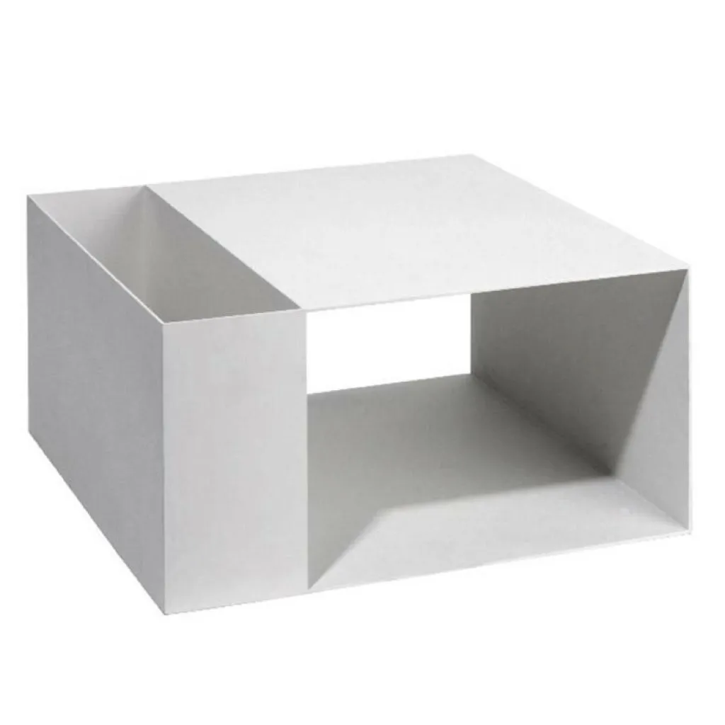 Mit Abmessungen von 50 x 50 cm und einer Höhe von 25 cm ist das moderne Möbel ein praktischer Ordnungshelfer und Ablagetisch, der sich optimal in eine designorientierte Umgebung einfügt. Der geradlinig und markant gestaltete Tisch passt hervorragend in den Wohnbereich als Ablagefläche oder TV-Konsole, ist jedoch auch als Container neben dem Schreibtisch im Arbeitszimmer oder als Nachttisch im Schlafzimmer ein nützliches wie schönes Möbelstück. Der Tisch besteht aus dünnwandigem Aluminium, das durch die matt beschichtete Soft-Touch-Oberfläche einen edlen Look erhält. Besonders ausdrucksstark ist die Kombination mehrerer Beistelltische, womit ein stimmiges Gesamtbild erzeugt wird.