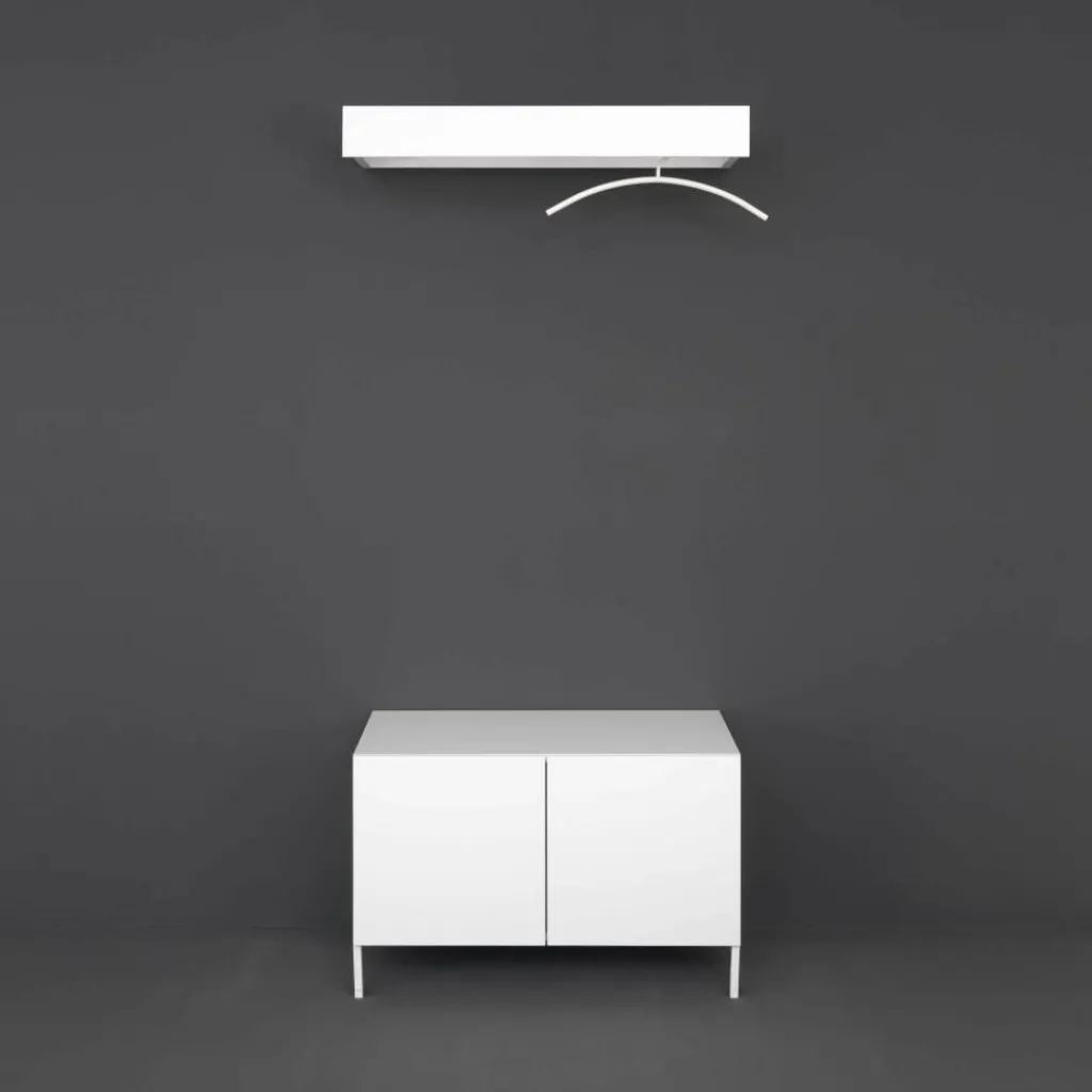Der stabile Korpus der Urban Wandgarderobe erstrahlt in einer edlen weißen Lackierung, die einen Hauch Purismus und Sachlichkeit versprüht. Der Aufbau ähnelt in seiner Form einem offenen Schubkasten, bei dem die Blende das Innenleben gelungen verbirgt. Die Garderobenstangen sowie die Kleiderhaken bestehen aus eloxiertem Aluminium und bilden gleichzeitig einen optischen Kontrast zur übrigen einfarbigen Gestaltung. Der moderne Stil der Garderobe bietet Ihnen jede Menge Möglichkeiten, Ihren Eingangsbereich nach Ihren Wünschen einzurichten. Ergänzen Sie das platzsparende Design mit einem Spiegel und einer Kommode, die weiteren nützlichen Stauraum für Sie bereithält.