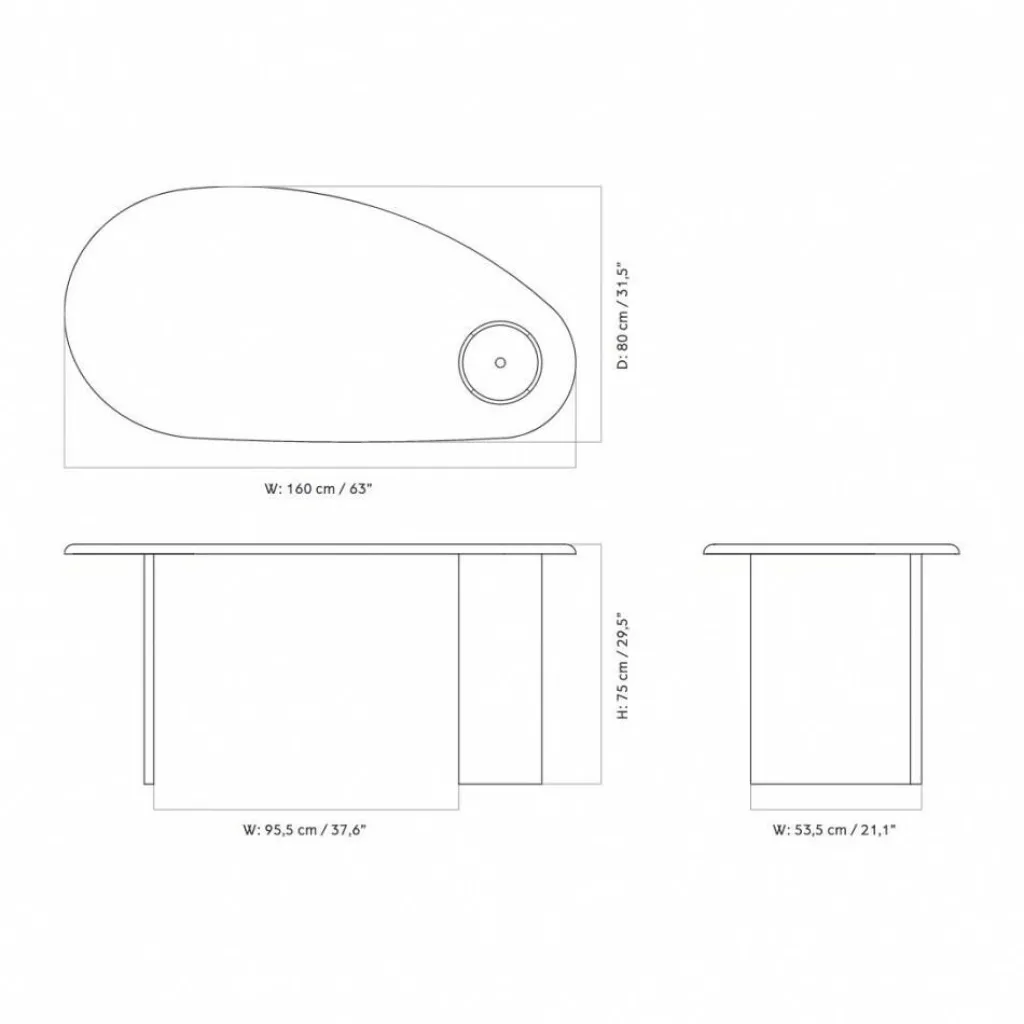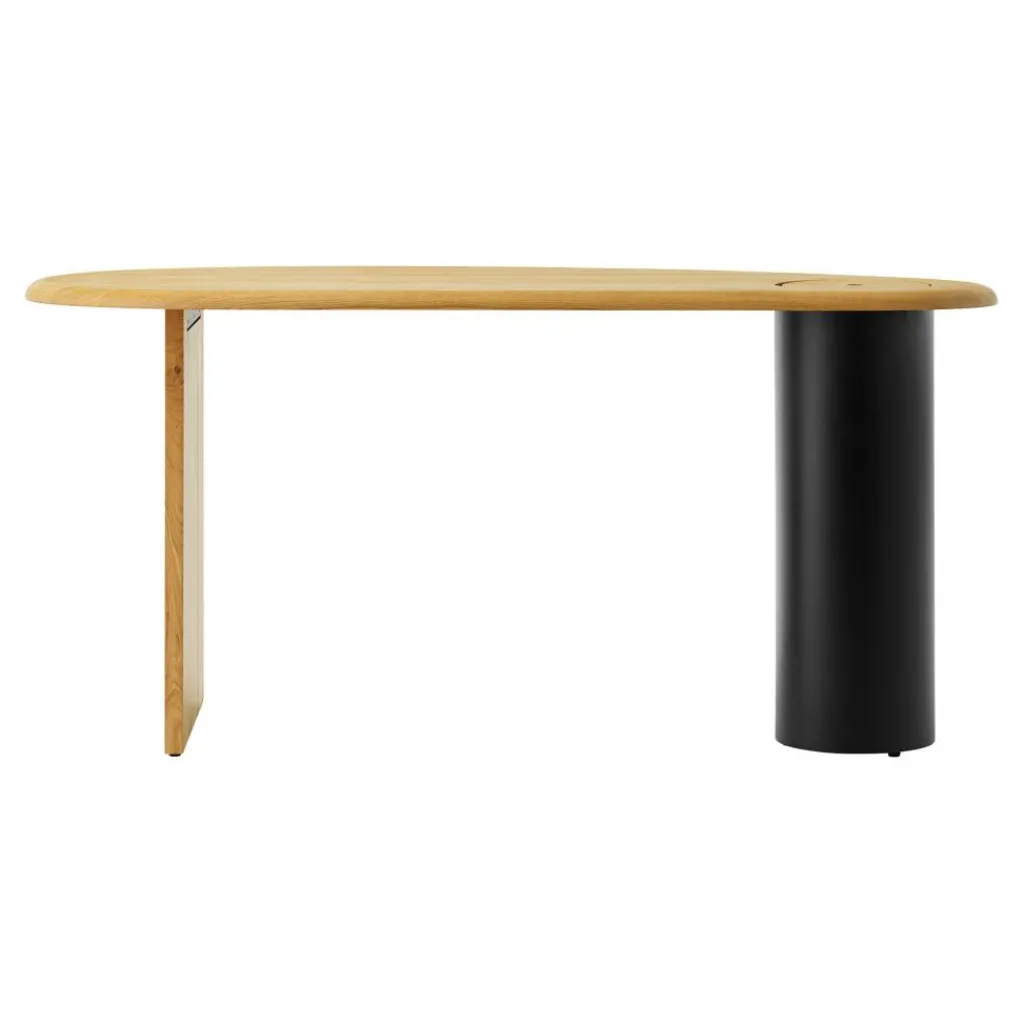 Der skulpturale The Eclipse Schreibtisch ist ein praktischer Arbeitstisch, der sich für das Büro oder Homeoffice eignet. Mit seiner abgerundeten Tischplatte spricht er Freunde modernen Designs besonders an. Inspiration für den harmonischen Entwurf fand der Designer in Kieselsteinen, die er an einem Strand entdeckte. Sicheren Stand garantiert dem Modell auf einer Seite eine robuste Säule und auf der anderen Seite eine traditionelle Platte. In dem säulenförmigen Standbein findet man Stauraum für Büromaterial und andere Utensilien. Die runde Form findet sich in einem Kreis auf der Tischplatte wieder. Namensgebend sind Himmelskörper mit konkaven und konvexen Formen. Hergestellt wird der The Eclipse Schreibtisch aus massivem Eichenholz, die Säule allerdings besteht aus Stahl.