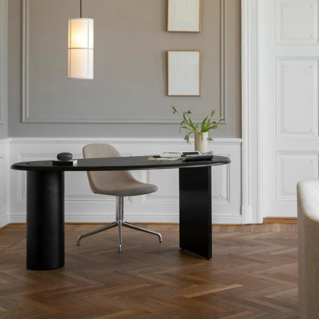 Der The Eclipse Schreibtisch wurde vom Fred Rigby Studio für die Marke Audo entworfen. Dabei handelt es sich um einen vielseitigen Allrounder. Wie der Designer sagt, soll er dazu einladen, zur Ruhe zu kommen und sich auf die Arbeit zu konzentrieren.
