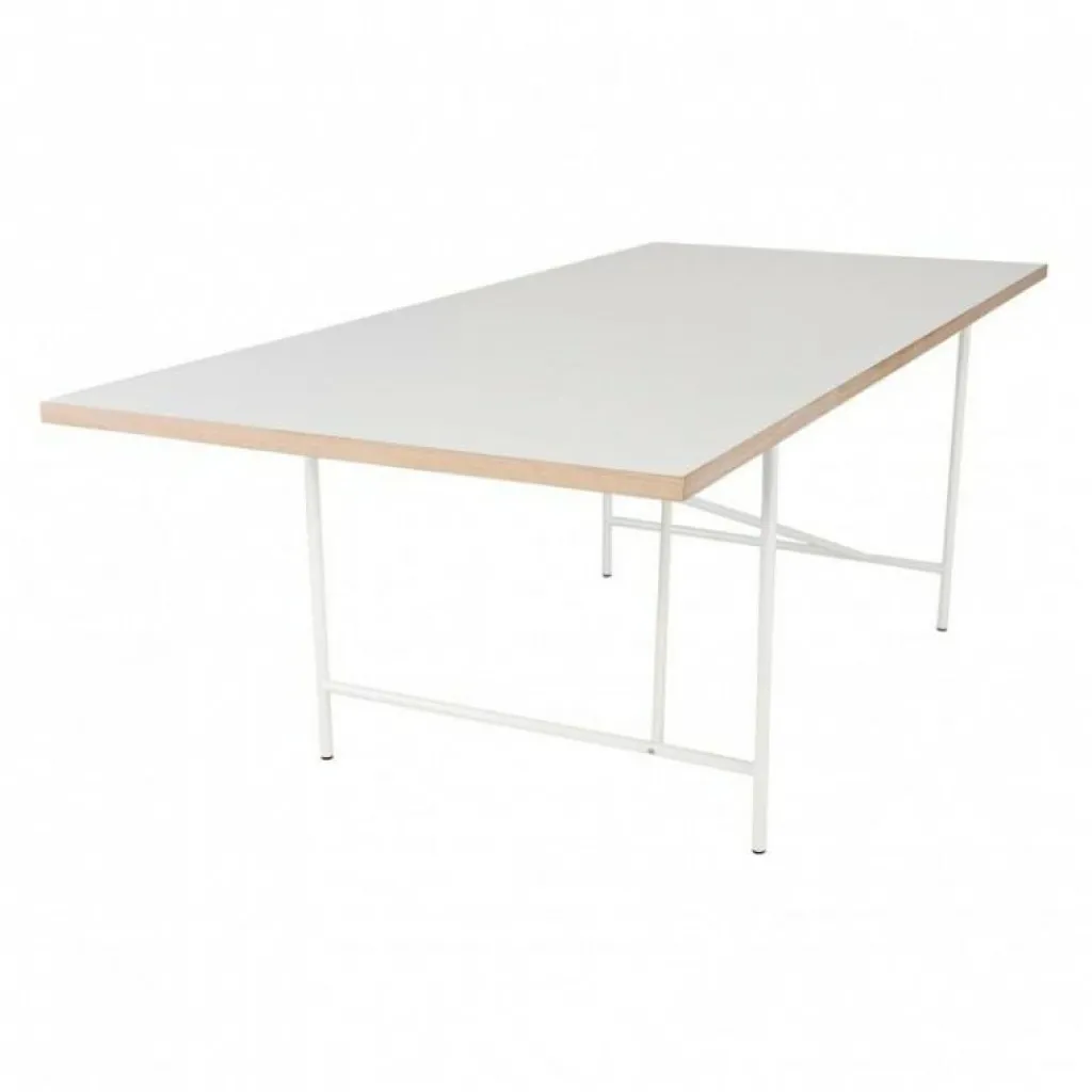 Der Eiermann 1 Tisch 180x90cm Gestell mittig wurde von Egon Eiermann für die Marke Richard Lampert entworfen. Er gehört zu einer Serie von Tischen, deren Konstruktion auf einem Konzept für ein Einzelstück aus 1953 basiert. Dieses war seinerzeit für den Architekten selbst ausgelegt und zielte auf eine Balance zwischen hoher Stabilität und minimalem Materialeinsatz ab.