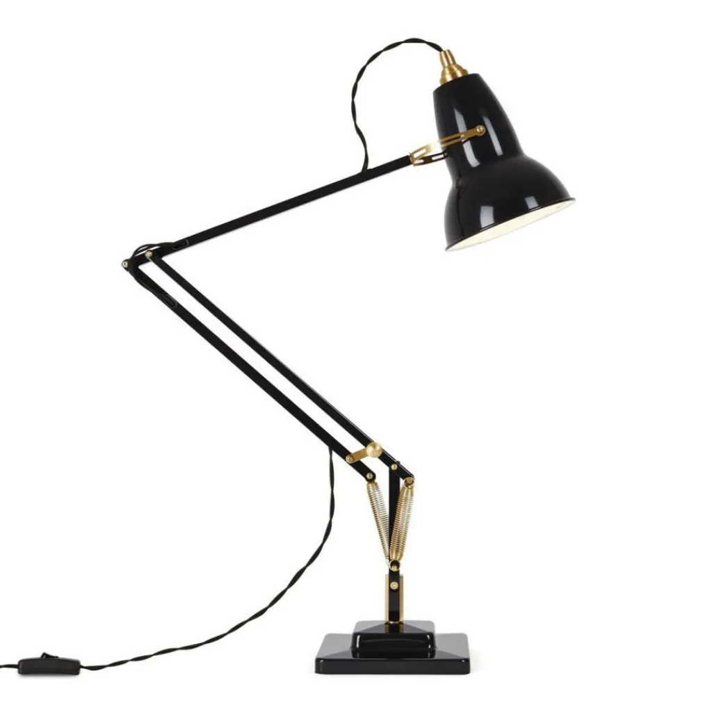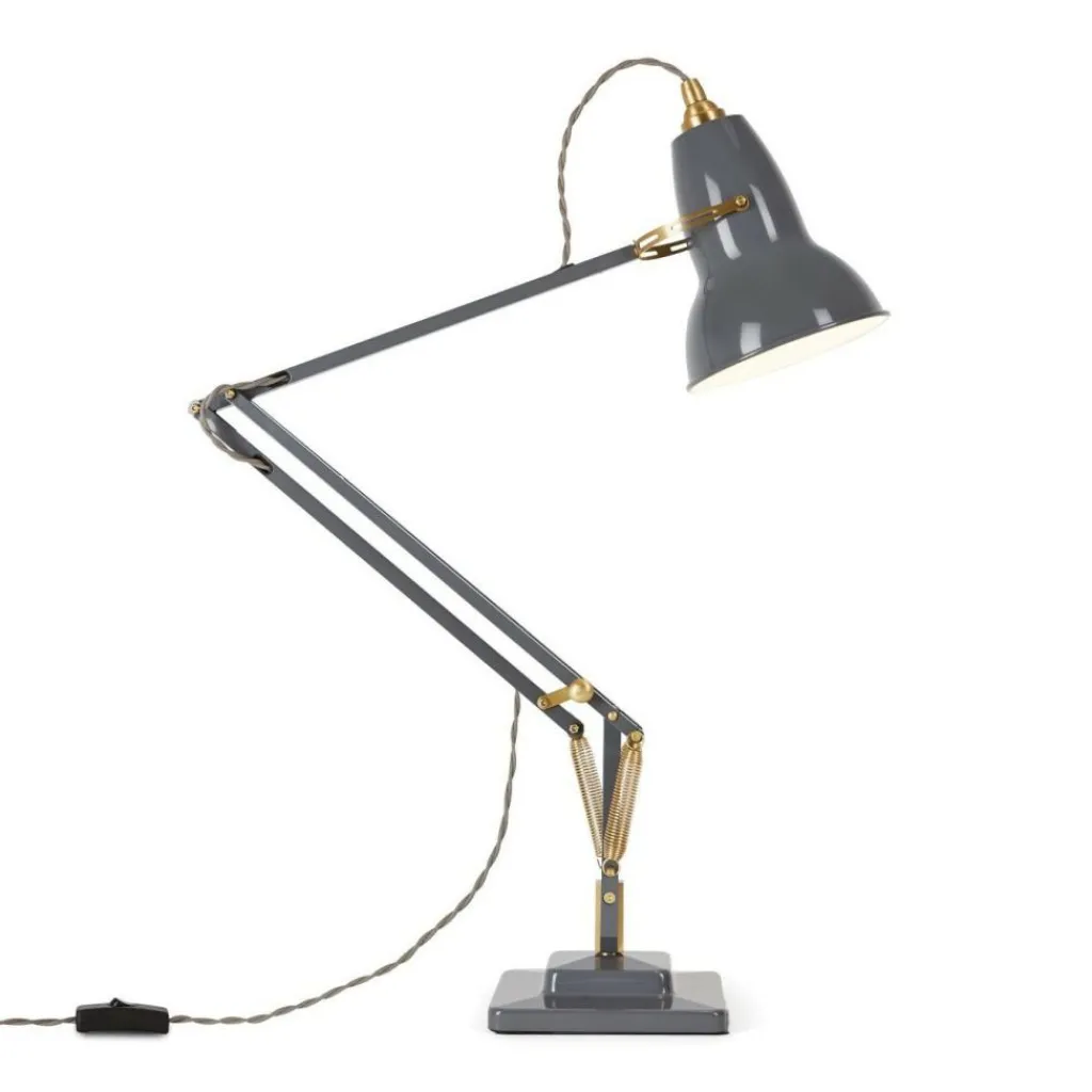 Die Original 1227 Brass Schreibtischleuchte Messing wurde von dem Designer George Carwardine für den britischen Hersteller Anglepoise entworfen. Eigentlich war George Carwardine ein Kraftfahrzeug-Ingenieur. In den frühen 1930er Jahren hatte er die Idee für eine Arbeitsplatz-Leuchte, die durch eine besondere Federtechnik jede gewünschte Position einnehmen konnte. In Kooperation mit dem Unternehmen Herbert Terry & Sons, das Stoßdämpfer für Autos baute, kam 1933 das erste Modell, die Leuchte 1208, auf den Markt. Wenig später folgte das Modell 1227, das zu einer englischen Stil-Ikone wurde. Anlässlich ihres 75. Geburtstages brachte die Royal Mail sogar eine Briefmarke mit der Abbildung dieser Lampe heraus.