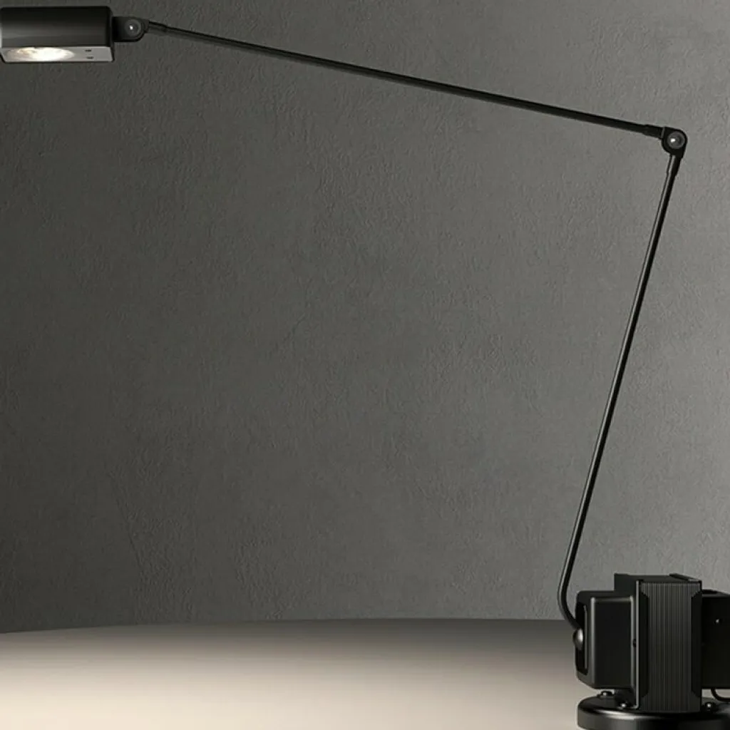 Die Daphine LED Schreibtischleuchte wurde von Tommaso Cimini für die Marke Lumina entworfen. Das im Industriestil gefertigte, in verschiedenen Farben erhältliche Modell wurde im Jahr 2013 präsentiert und geht auf einen Klassiker aus dem Jahr 1975 zurück.