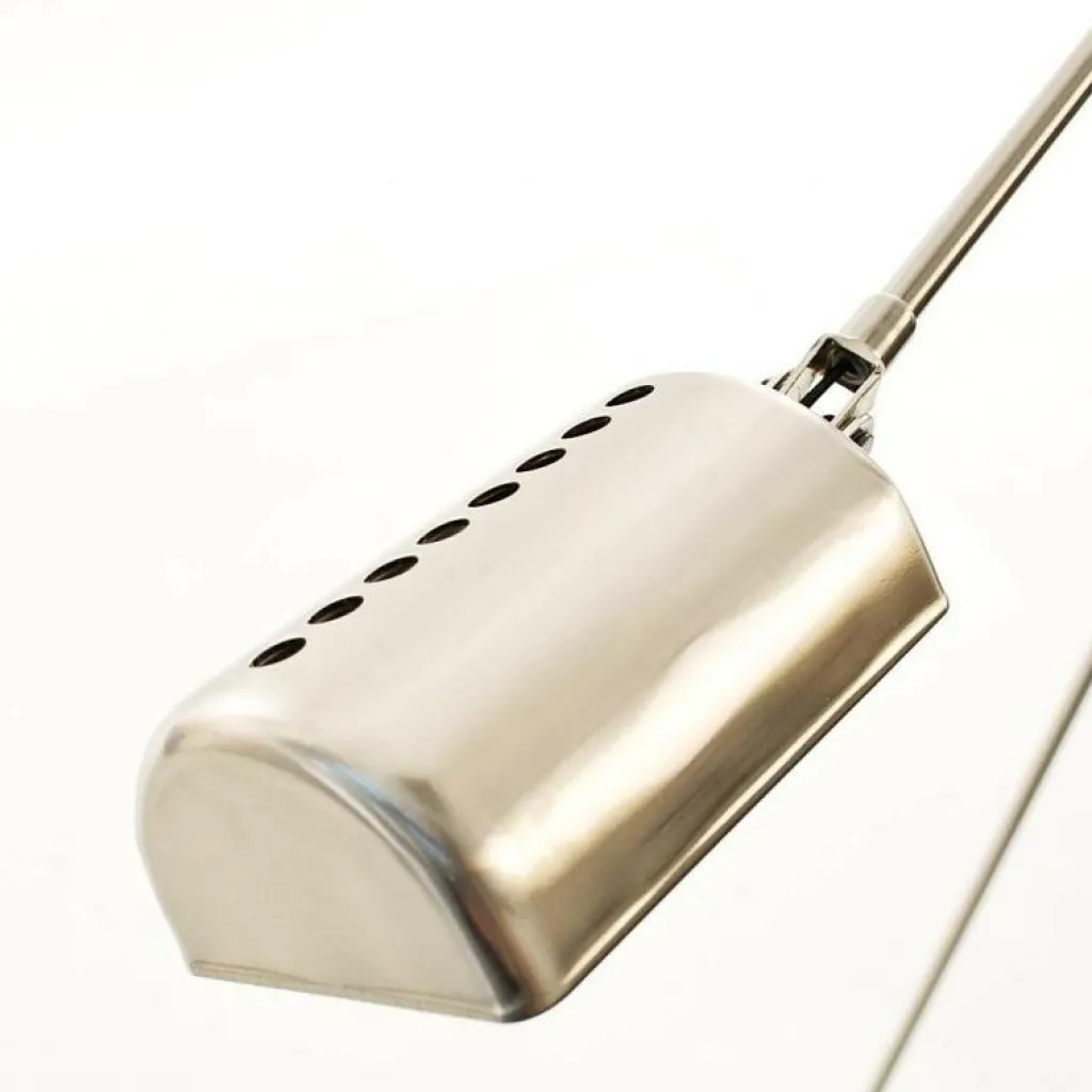 Die Basis der Daphine LED Schreibtischleuchte hat einen Durchmesser von 11cm und ist 10cm hoch. Der untere Teil des Arms ist 35cm lang und der obere 40cm lang. Der Leuchtenkopf hat eine Länge von 8cm. An der Basis befindet sich der Schalter. Damit kann man die Helligkeit zu 50 oder 100 Prozent einstellen oder stufenlos dimmen.