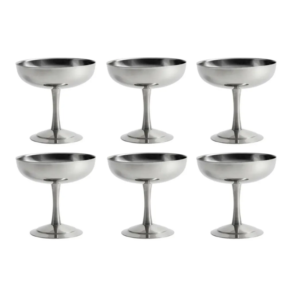 Der Kitchen Market Italian Eisbecher im 6er-Set wurde für den Hersteller HAY entworfen. – Es ist erstaunlich, was für eine charmante Ausstrahlung so simple Gegenstände wie die italienischen Eisbecher der Marke HAY haben können! Man braucht sie nur zu sehen, und schon erwachen Erinnerungen an Kindheitstage am Meer, wo ein gut gelaunter, witziger Kellner die drei bunten Kugeln Eis servierte, nach denen man schon so gelechzt hatte. Da war sonst nichts als ein paar Waffeln – keine Toppings, keine Fähnchen, nichts außer Eis. Und genau das war auch alles, was man wollte. Wenn man dann den vorne abgeflachten, kleinen Eislöffel zum ersten Mal in das zierliche Gefäß aus Edelstahl tauchte, das rundum vor Kälte beschlagen war, und den ersten Löffel Eiscreme zum Mund führte, war man im siebten Himmel.