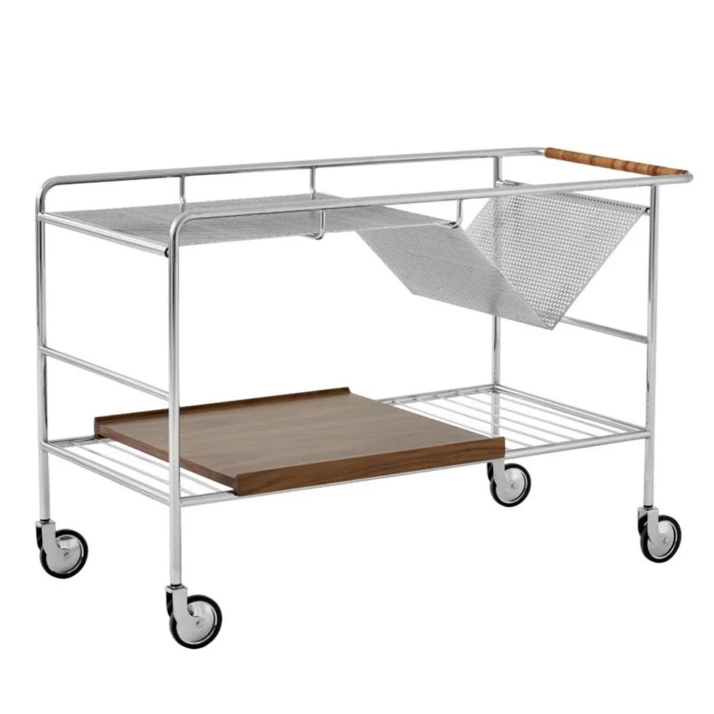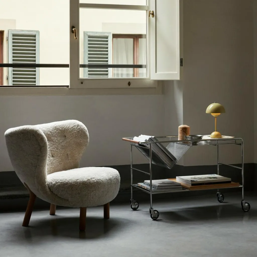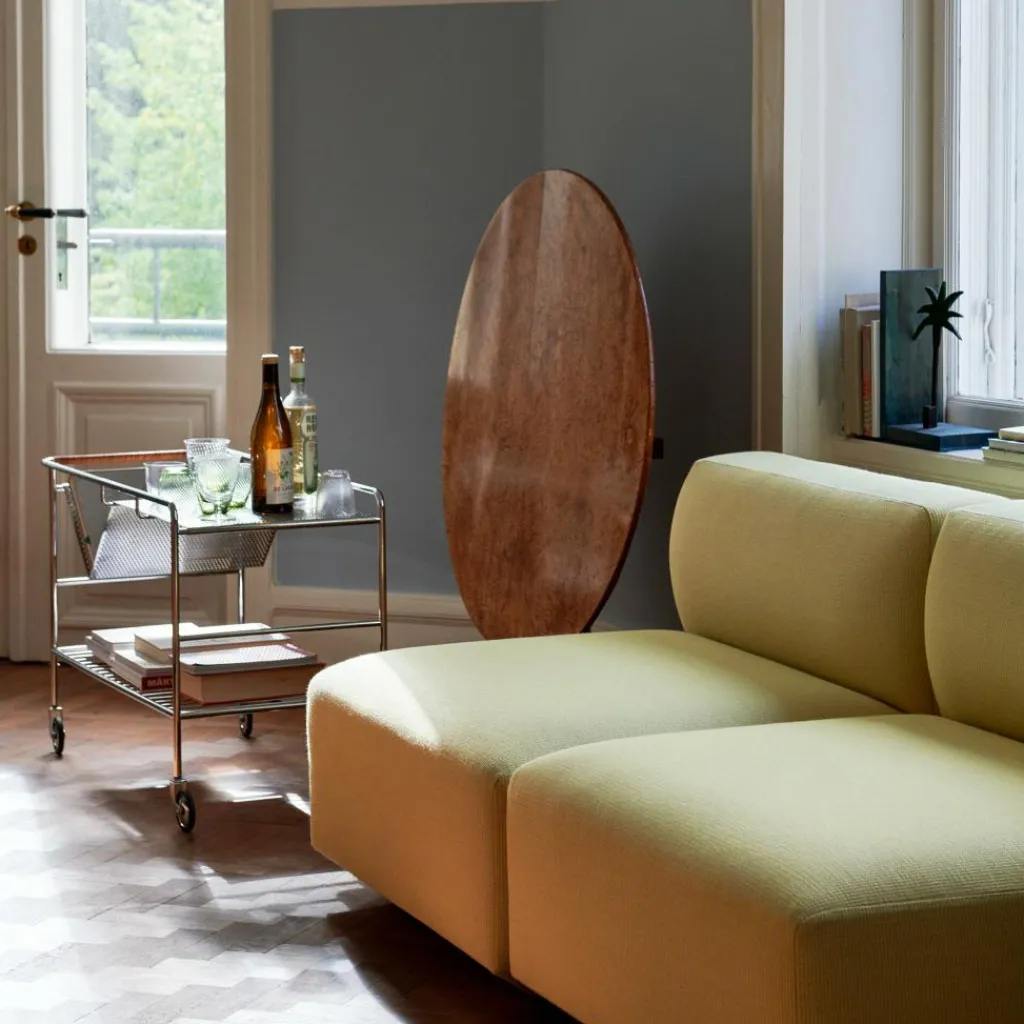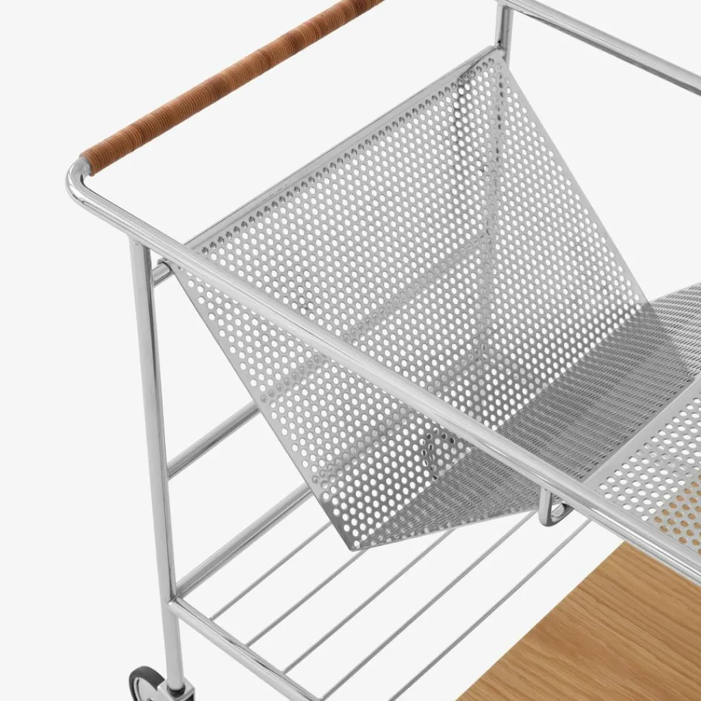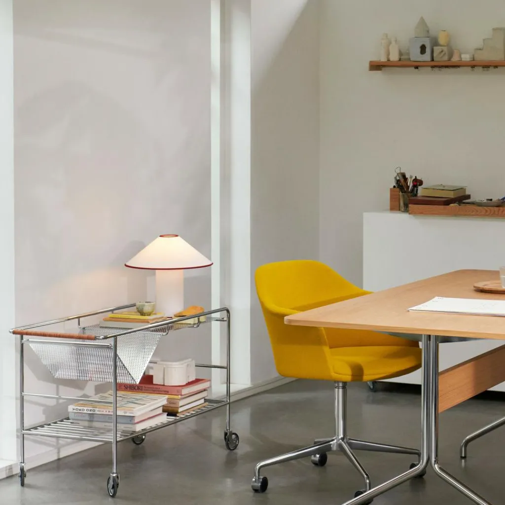 Der Alima NDS1 Servierwagen wurde vom Note Design Studio für die Marke &Tradition entworfen. Das schwedische Designduo ließ sich dabei vom kreativen Chaos auf einem Arbeitstisch inspirieren und schuf ein Aufbewahrungsmöbel, das nicht nur zum Abstellen von Drinks geeignet ist, sondern auch Ordnung in den Arbeitsalltag bringt.