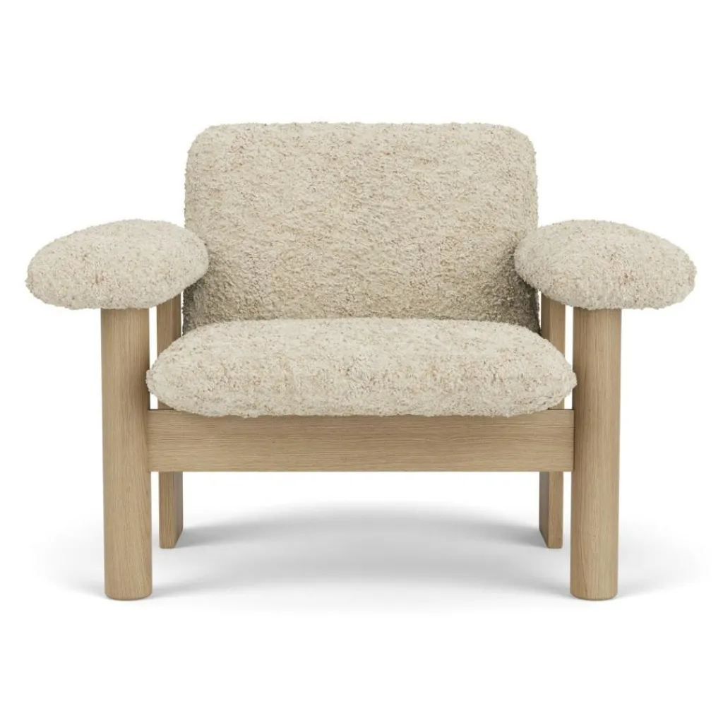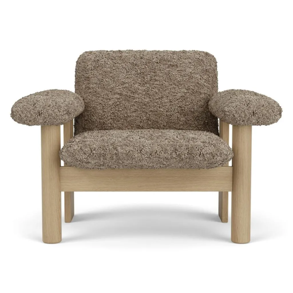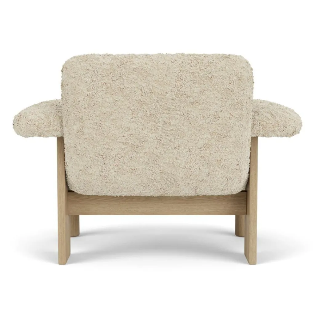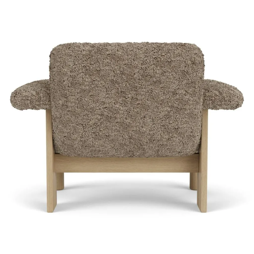 Unvergleichlich weicher Sitzkomfort und eine robuste Ästhetik machen den Brasilia Lounge Chair Schaffell zu einem Wohlfühlmöbel in jedem Wohnbereich. Sein schlichtes, geradliniges Gestell mit stabilen runden Vorderbeinen und rechteckigen Hinterbeinen ist in traditionellem Tischlerhandwerk aus massivem Eichenholz gefertigt. Sowohl die gepolsterte Sitzfläche als auch die Rückenlehne bestehen aus Formschaum über einem Stahlrahmen. Ein Designstatement bildet der Bezug aus Schaffell. Er ist in verschiedenen Farbvarianten erhältlich und verleiht dem Sessel eine gemütliche, natürliche Note. Zusätzlichen Komfort schenken die üppig gepolsterten Armlehnen, die sich auf einer Höhe von 51cm befinden. Das hochwertig verarbeitete Modell ist als markantes Einzelstück bereits ein echter Hingucker. Zugleich bildet es eine optimale Ergänzung zum Sofa und Beistelltisch der Brasilia-Kollektion von Audo.