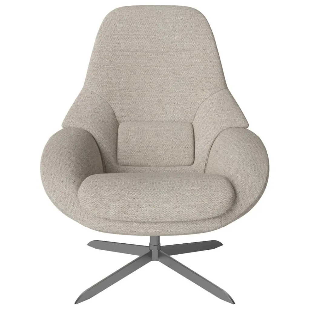 Der Saga Sessel Gestell satin sieht aus wie eine Einladung: Die ergonomische Formgebung lädt ein, auf ihm Platz zu nehmen und das durchdachte Design des Drehsessels zu genießen. Wie eine Schale geformt, ist der Sessel ergonomisch optimiert und fördert eine angenehme Sitzhaltung. Die Polsterung wird durch ein zusätzliches Sitzpolster und eine gepolsterte Unterstützung im Lendenbereich ergänzt. So wird langes Sitzen im Saga Sessel Gestell satin zu Ihrer neuesten Lieblingsbeschäftigung! Ob mit einem guten Buch oder zum Genießen von Musik – aus dem frei stehenden Drehsessel möchte man nicht so schnell wieder aufstehen. Auch für ein kleines Schläfchen eignet sich die körpernahe Formgebung des Sessels hervorragend. Zudem kann die Neigung des gesamten Sessels mittels einer unter dem Sitz angebrachten Schraubarretierung angepasst werden. Die Höhe des Sessels mit einer 360-Grad-Drehfunktion ist 101 cm, während er 106 cm tief und 77 cm breit ist. Die Sitzhöhe liegt bei 45 cm und die Sitztiefe bei bequemen 54,50 cm. Die Armlehnen in einer Höhe von 56 cm unterstützen optimal das Halten eines Buchs oder eines Tablets. Das maximale Gewicht des Nutzers darf bei 110 kg liegen. Der hochwertige Stoff trifft in dieser Variante auf ein 4-Stern-Fußgestell aus lackiertem Stahl. Das Gestell muss mit dem Sessel zusammengesteckt werden.