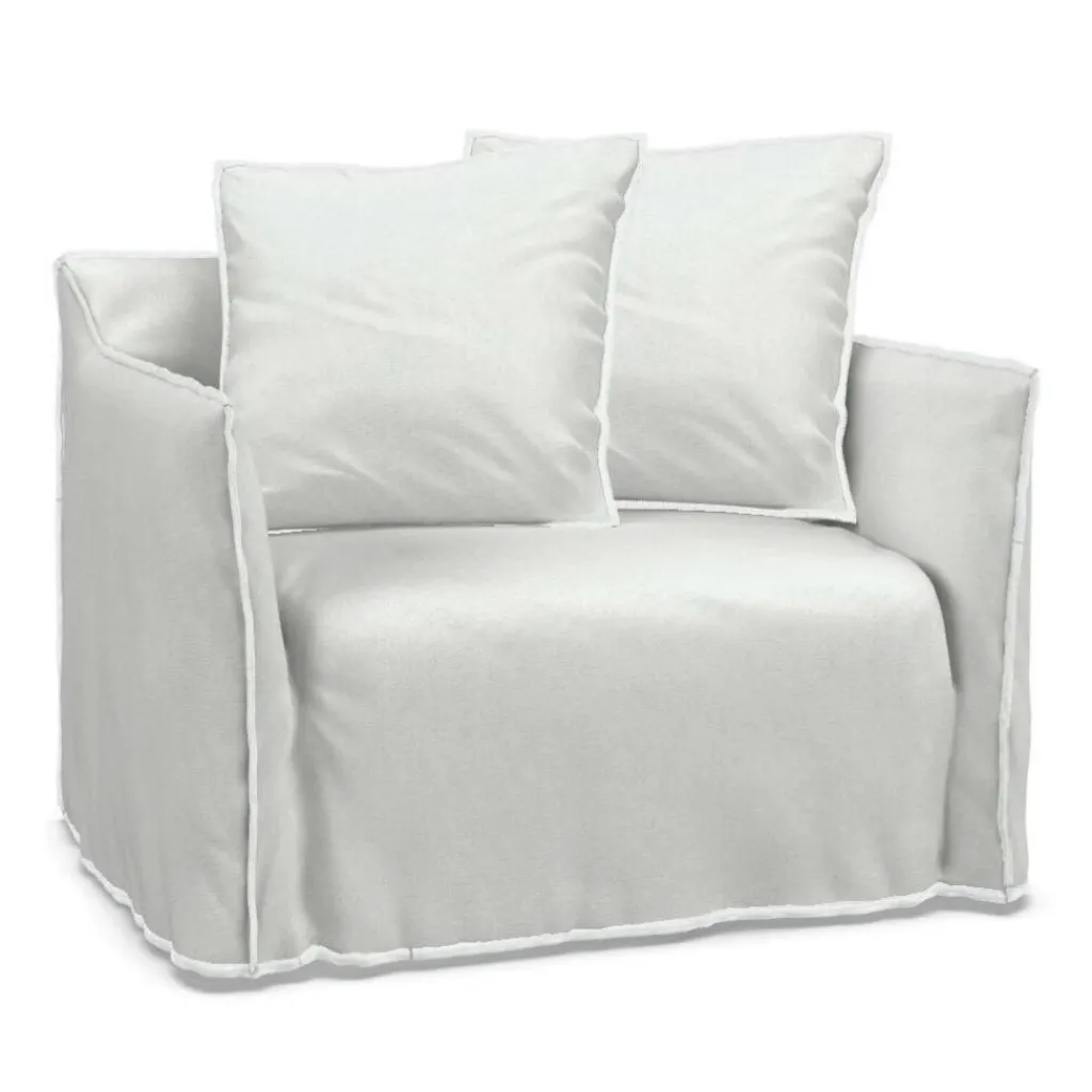 Zwei 60x60cm große Rückenkissen, die mit Dacron und Daunen gefüllt sind, gehören bereits zum Lieferumfang. Der Stoffbezug des Ghost 09 Lounge-Sessels von Gervasoni ist praktischerweise abziehbar.