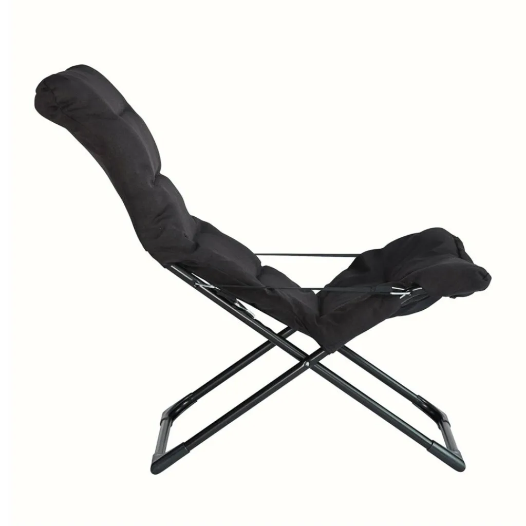 Für den Fiesta Sessel verwendet der Designer aus Italien eine Basis aus pulverbeschichtetem Stahl. Die geschwungene Rückenlehne lädt dazu ein, es sich bequem zu machen. Zum hervorragenden Sitzkomfort tragen die Armlehnen bei, die aus breitem Gurtband bestehen. Sie halten außerdem das dicke Sitzpolster an der richtigen Position. Das Polster ist mit Vlies gefüllt und hat einen Bezug aus Polyester. Der Fiesta Sessel ist mit bis zu 120 kg belastbar. Wird er nicht mehr gebraucht, kann man ihn wie einen Liegestuhl für den Garten zusammenklappen. Je nachdem, ob man lesen oder einen Mittagsschlaf halten möchte, kann man die Lehne verstellen.