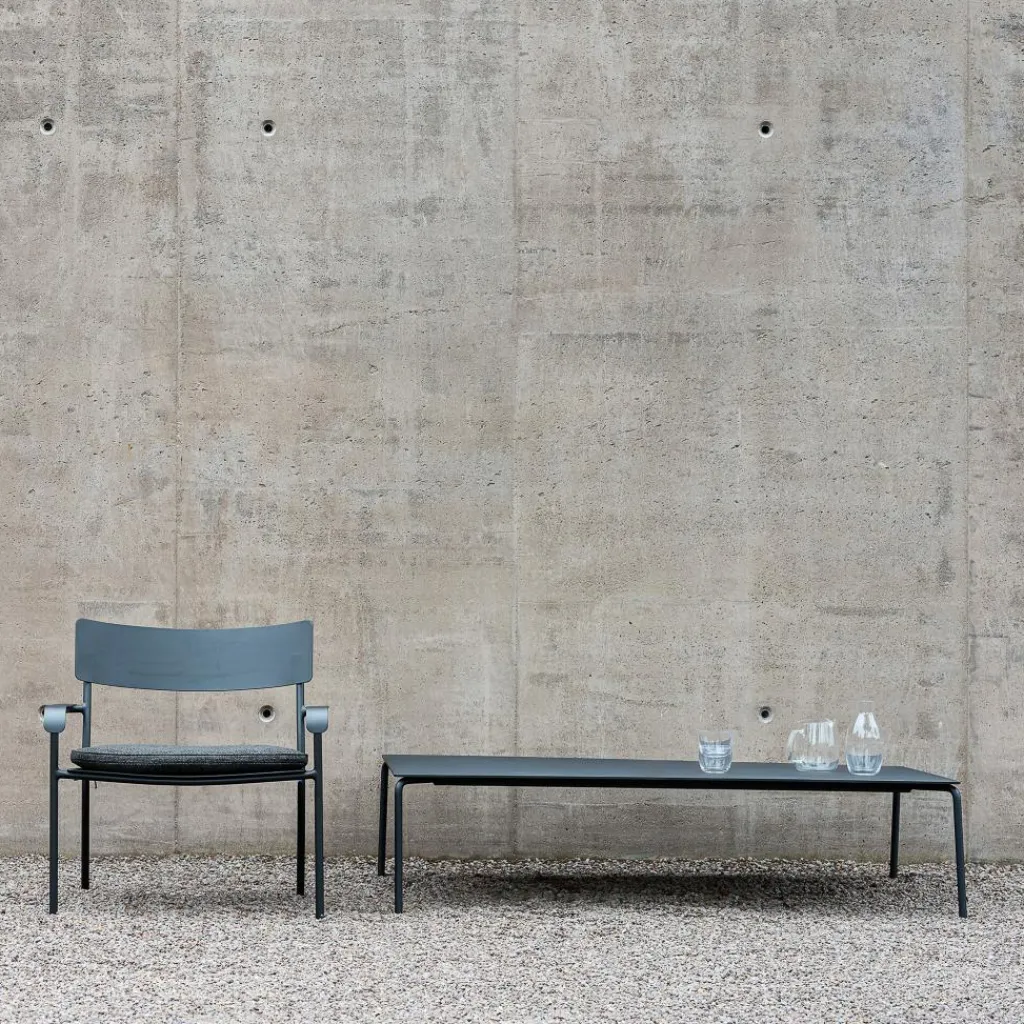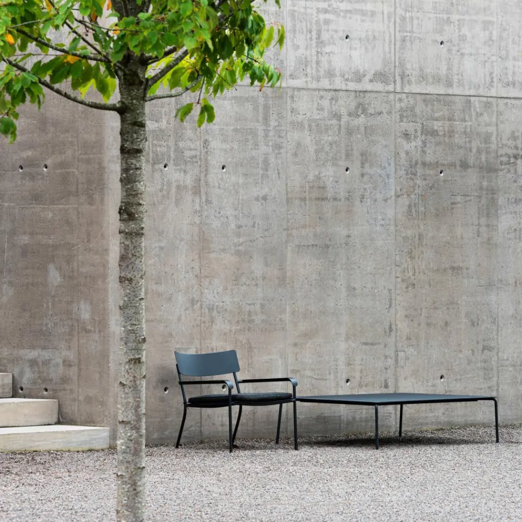 Der August Lounge Sessel wurde von Vincent Van Duysen für die Marke Serax entworfen. Er gehört einer puristischen Outdoorkollektion an, die für die Terrasse des Hotels August in Antwerpen geschaffen wurde. Eine minimalistische Formensprache kennzeichnet die August-Modelle, die ein modernes Gegenstück zu den historischen Fassaden des einstigen Militärkrankenhauses bilden.