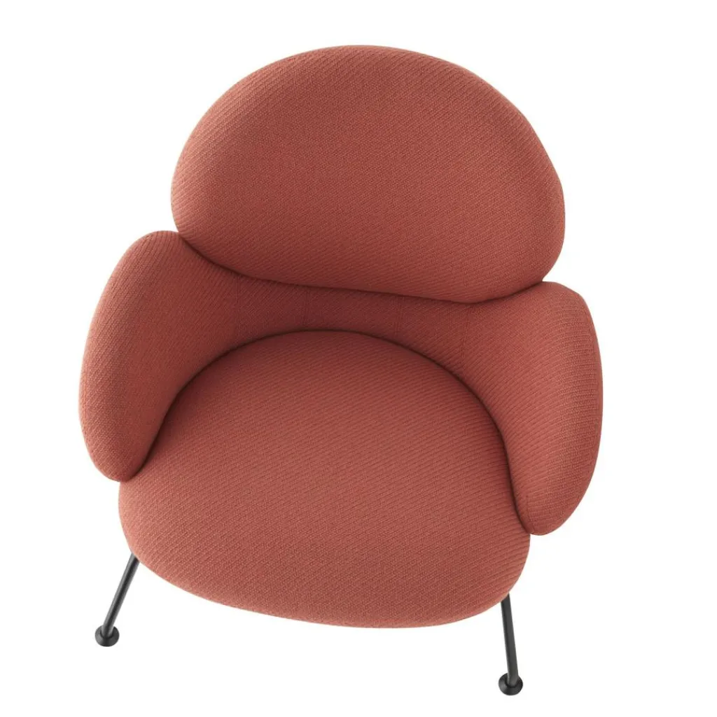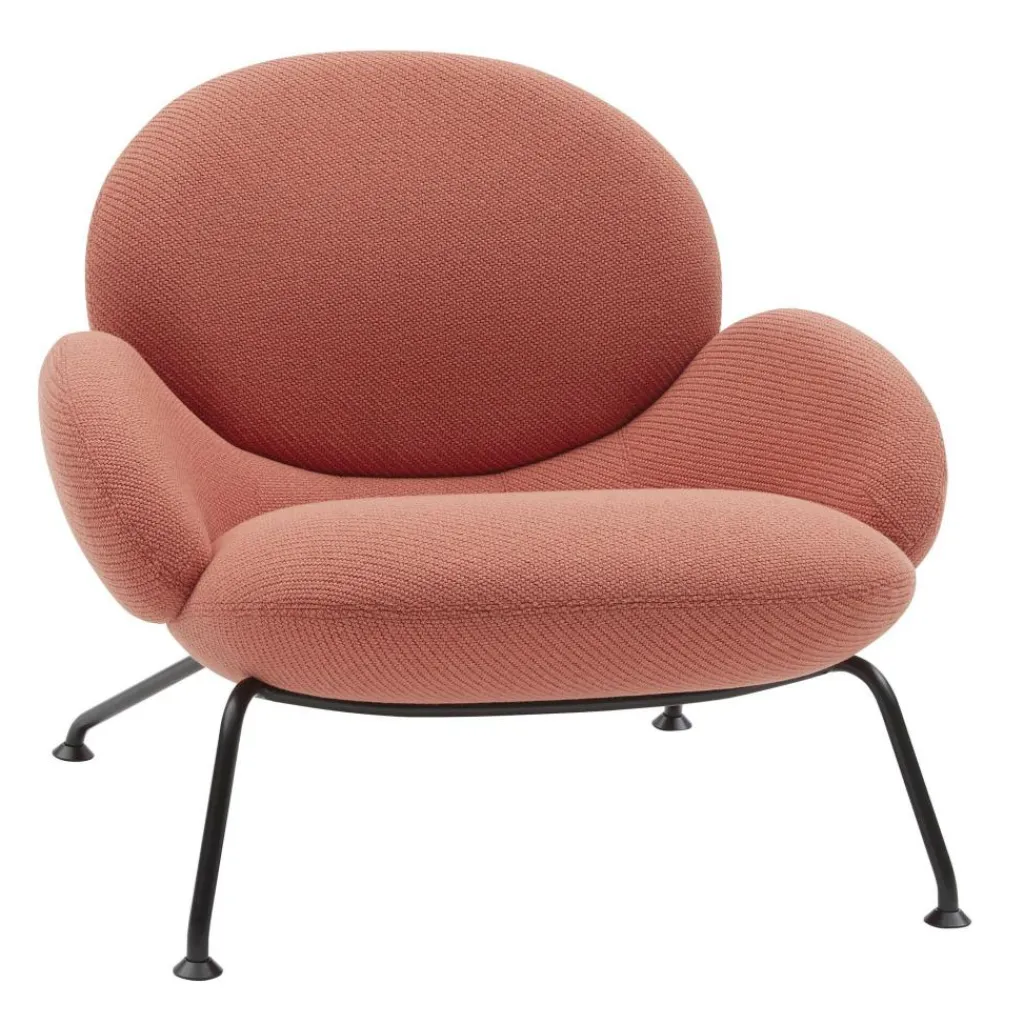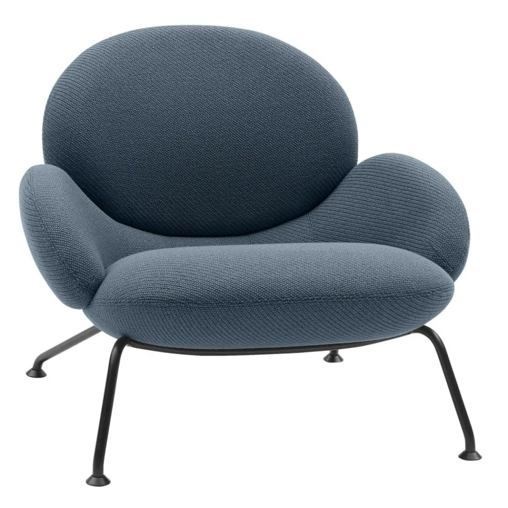Der Baixa Sessel erinnert an eine Skulptur mit klaren, weichen Linien und einfachem, zugleich markantem Ausdruck. Auffallendes Designmerkmal des Loungemöbels ist der als Lendenwirbelstütze fungierende mittlere Teil der Rückenlehne, der fließend in die beiden Armlehnen übergeht. Diese sind ebenso sanft und rund geformt wie der obere Bereich der leicht geneigten Rückenlehne. Die Polsterung des Sessels besteht aus Schaumstoff, das Gestell mit schmalen gespreizten Beinen aus lackiertem Stahl. Im Sinne der Nachhaltigkeit ist das Modell aus OEKO-TEX®-zertifizierten Materialien gefertigt. Als abnehmbarer Bezug stehen ein Stoff aus 90% Wolle und 10% Nylon der Marke Kvadrat sowie ein Bouclé-Stoff aus 34% Viskose, 33% Polyacryl, 17% Wolle, 8% Polyester, 4% Leinen und 4% Baumwolle zur Auswahl.