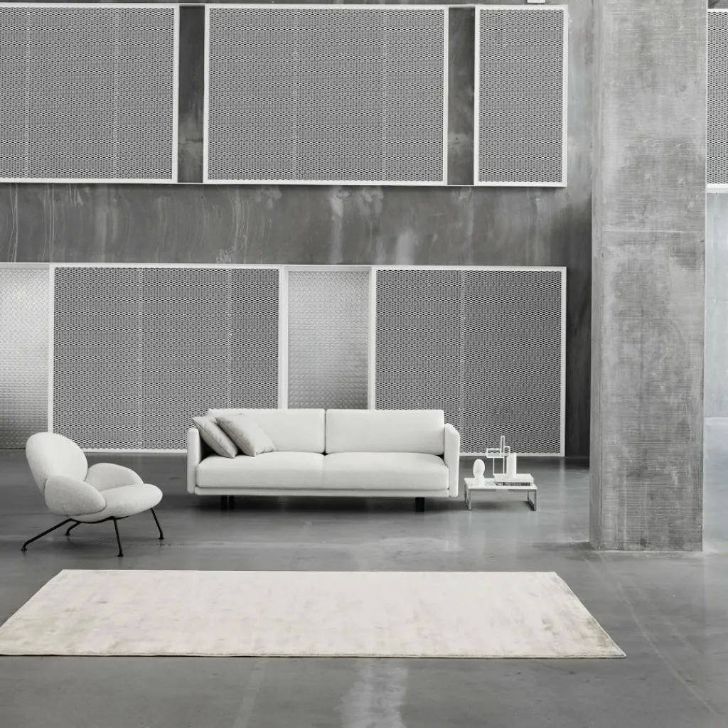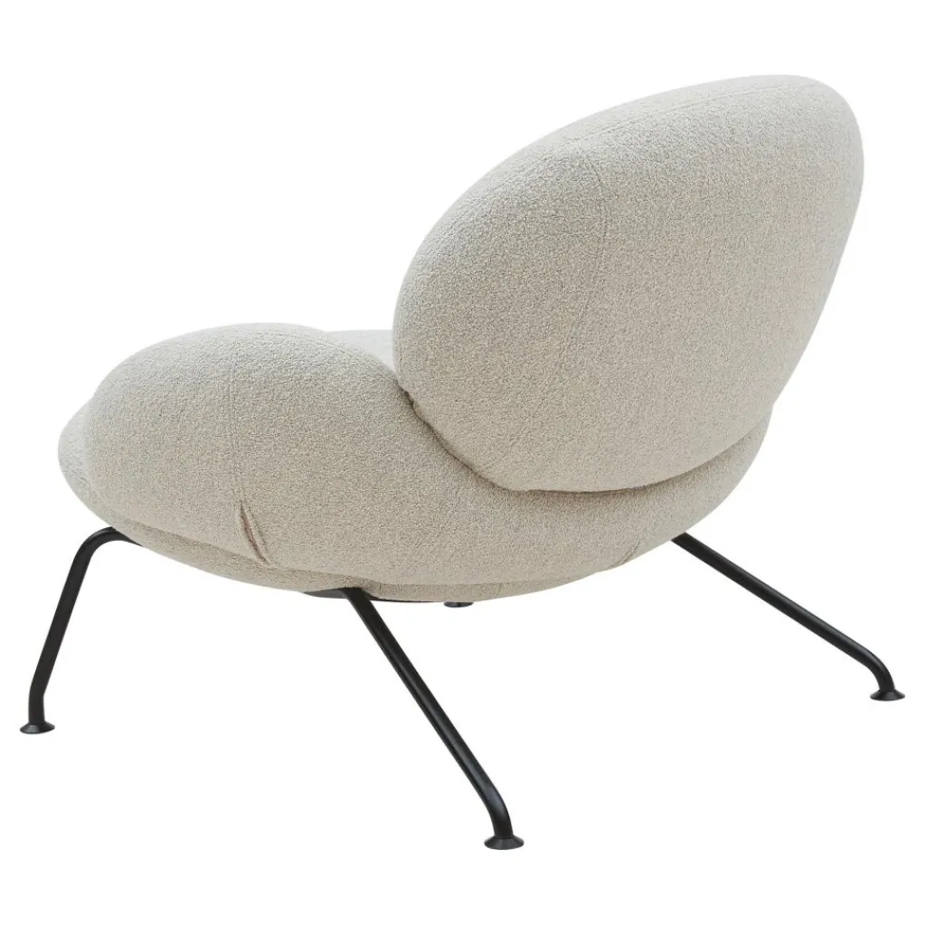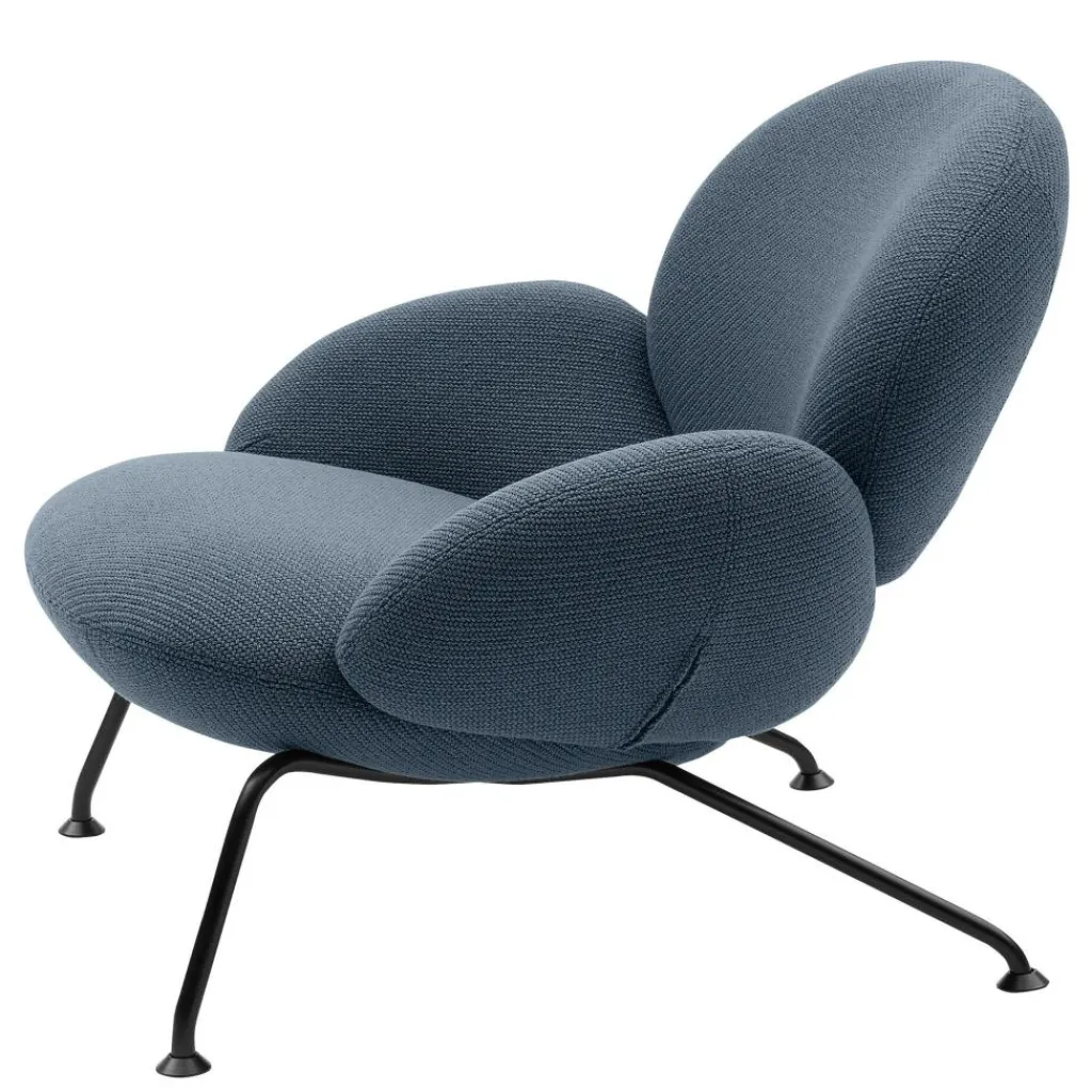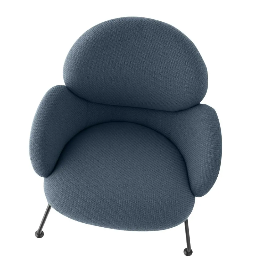 Der Baixa Sessel erinnert an eine Skulptur mit klaren, weichen Linien und einfachem, zugleich markantem Ausdruck. Auffallendes Designmerkmal des Loungemöbels ist der als Lendenwirbelstütze fungierende mittlere Teil der Rückenlehne, der fließend in die beiden Armlehnen übergeht. Diese sind ebenso sanft und rund geformt wie der obere Bereich der leicht geneigten Rückenlehne. Die Polsterung des Sessels besteht aus Schaumstoff, das Gestell mit schmalen gespreizten Beinen aus lackiertem Stahl. Im Sinne der Nachhaltigkeit ist das Modell aus OEKO-TEX®-zertifizierten Materialien gefertigt. Als abnehmbarer Bezug stehen ein Stoff aus 90% Wolle und 10% Nylon der Marke Kvadrat sowie ein Bouclé-Stoff aus 34% Viskose, 33% Polyacryl, 17% Wolle, 8% Polyester, 4% Leinen und 4% Baumwolle zur Auswahl.