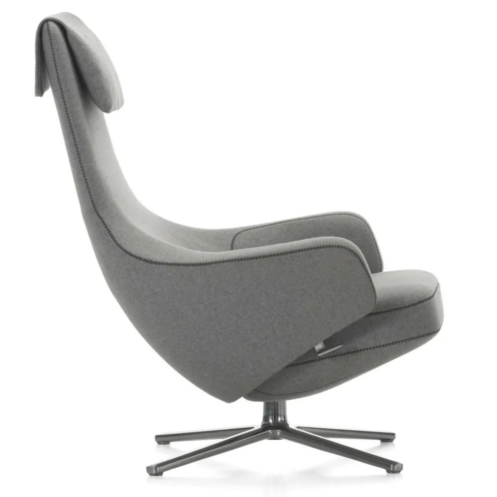 Der Repos Sessel wurde von Antonio Citterio für die Marke Vitra entworfen. Der italienische Designer hat das Modell im Jahr 2011 vorgestellt. Der drehbare Stuhl lädt zum Ausruhen ein. Genau das bedeutet die Übersetzung des Namens.
