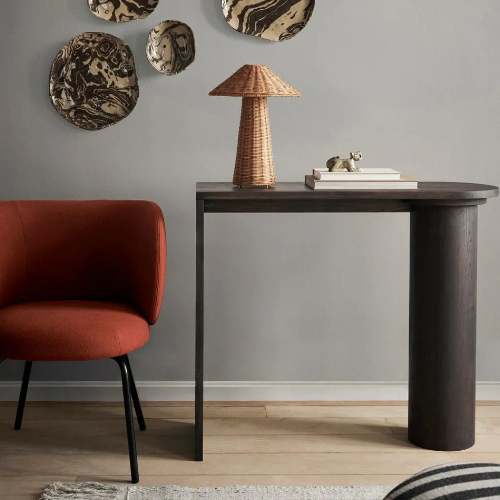 Der Pylo Konsolentisch wurde für die Marke Ferm Living entworfen. Er ist Teil einer formschönen Tischreihe, die ihre Bezeichnung einem säulenartigen Standfuß verdankt, der Möbel wie ein Pylon in einem antiken Bauwerk stützt. Damit verbinden die zeitgemäßen Tischmodelle eine praktische Funktionalität mit einem skulpturalen Charakter.