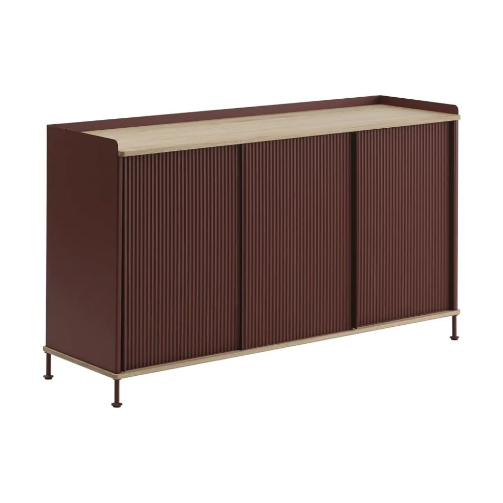 Das Enfold Sideboard 148x45cm wurde von Thomas Bentzen für die Marke Muuto entworfen. Es ist Teil einer Aufbewahrungsreihe, die mit ihren Materialien industrielle und wohnliche Aspekte verbindet und damit eine moderne Atmosphäre schafft.