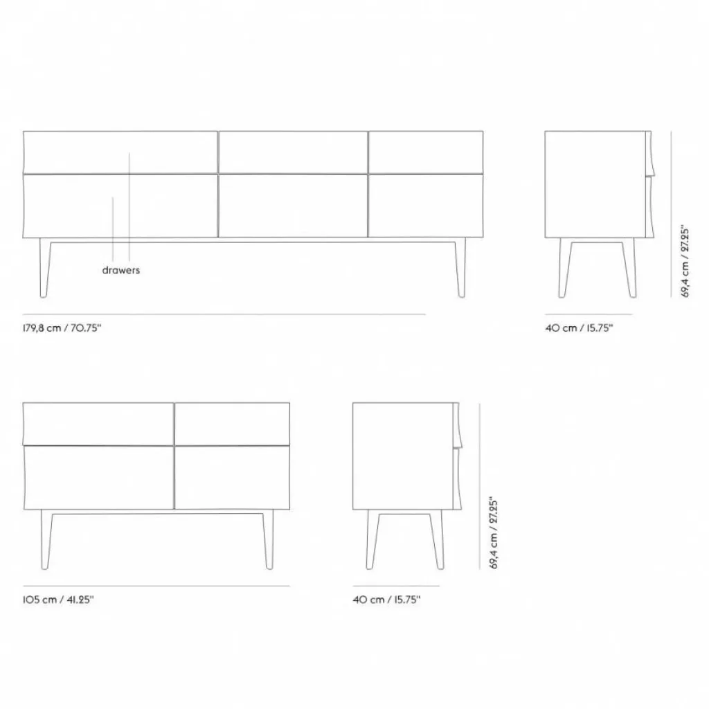 Das kleine Reflect Sideboard von Muuto ist aus massivem Eichen-Holz gefertigt, 105cm breit, 69cm hoch und 40cm tief. Die Rückwand der Kommode ist furniert, so können Sie Reflect auch als kompakten Raumteiler einsetzen.