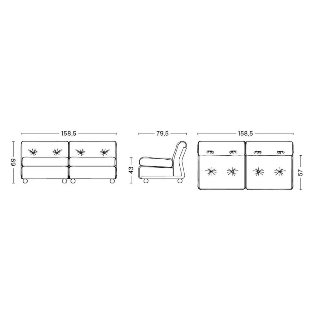| Abmessungen | Breite: 158.5cm Höhe: 69cm Tiefe: 79.5cm Sitzhöhe: 43cm |