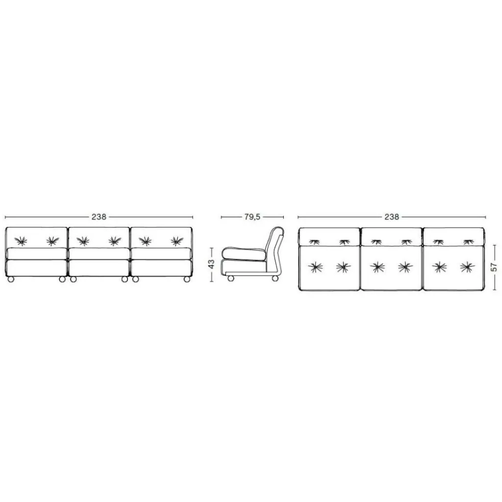 | Abmessungen | Breite: 238cm Höhe: 69cm Tiefe: 79.5cm Sitzhöhe: 43cm |