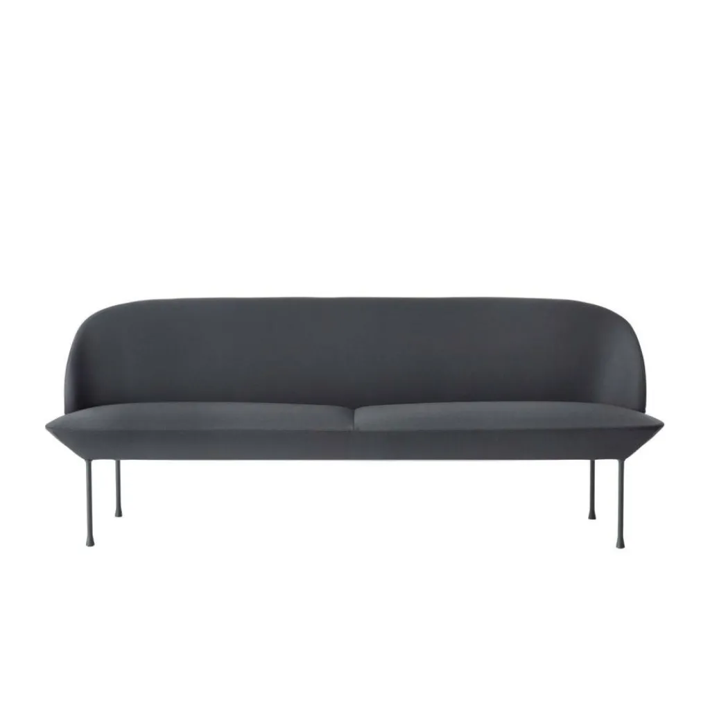 Das Oslo 3-Sitzer Sofa von Muuto besteht aus einem gepolsterten Stahlrahmen. Es ist 200cm breit, 78cm hoch und 73cm tief, die Sitzhöhe beträgt 45cm. Unter unseren „Produktvarianten“ ist der Stoffbezug in verschiedenen Farben verfügbar – Ausführungen in Grau sind auf Anfrage bei uns erhältlich.