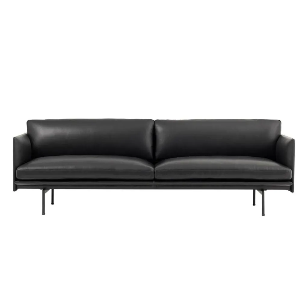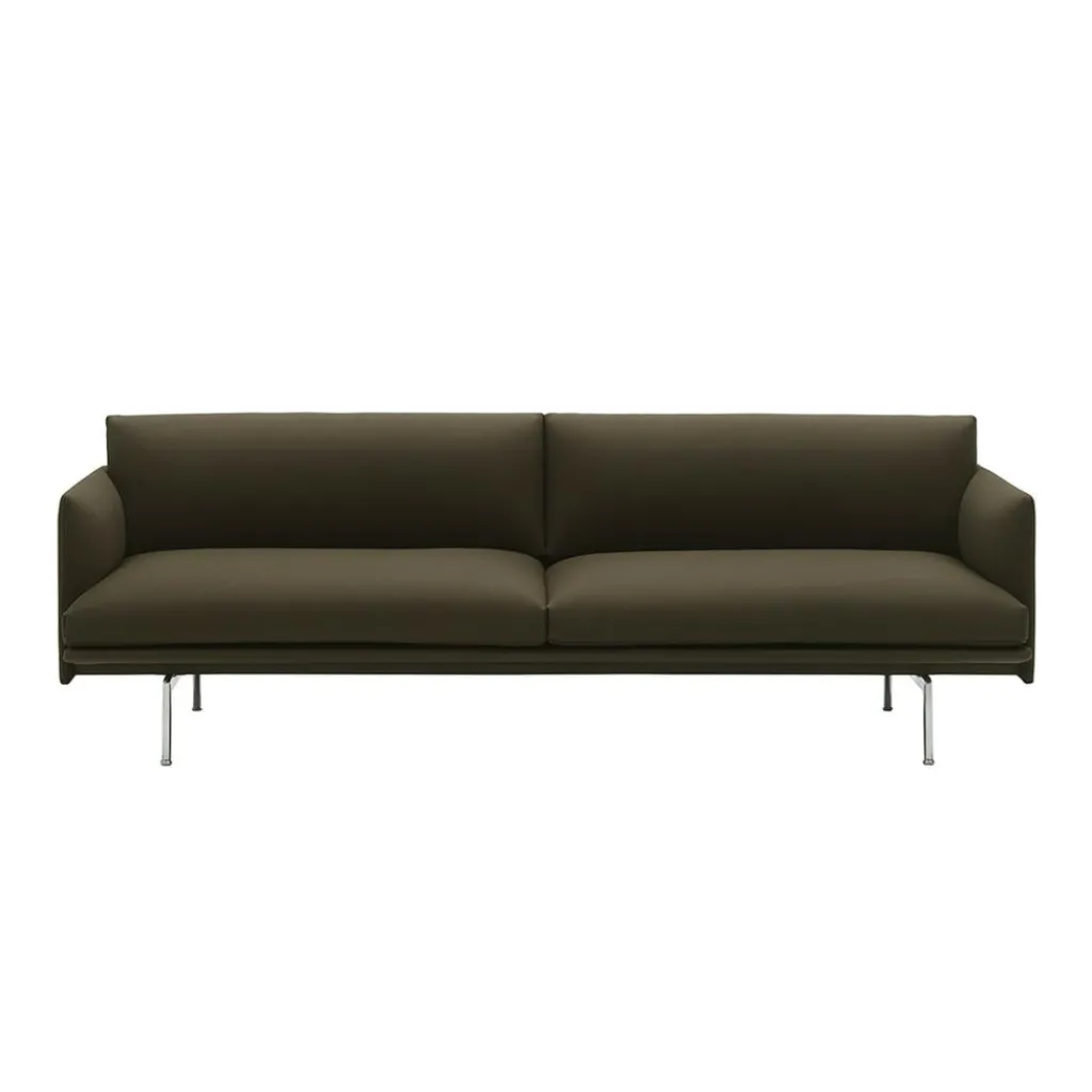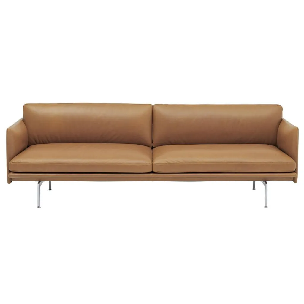 Das 220cm breite, 84cm und 69,5cm hohe Outline Sofa 3 Sitzer wirkt auf seinem schlanken Aluminiumgestell ausgeprägt elegant und beinah schwerelos. Der minimalistische Auftritt wird durch die Aufteilung des Polsters verstärkt, das durch eine mittige Naht in zwei optische Bereiche getrennt ist. Das Outline Sofa 3 Sitzer mit einer Sitzhöhe 40 cm lässt sich dadurch in viele Einrichtungen und Wohnstile harmonisch integrieren. Die Innenstruktur besteht aus Holz. Alle Elemente sich mit dem gleichen Stoff oder Leder überzogen. Es stehen unterschiedliche Farben zur Auswahl.