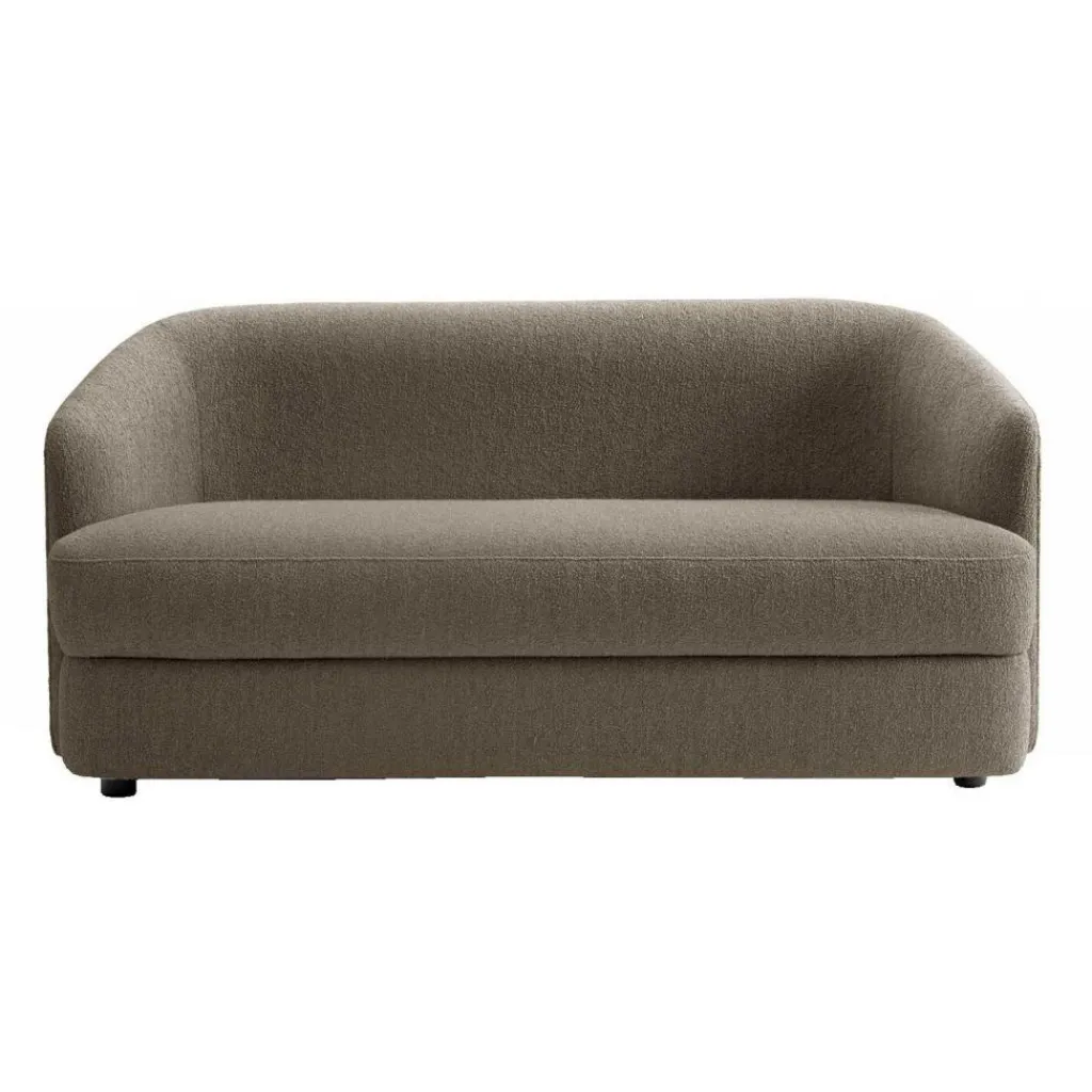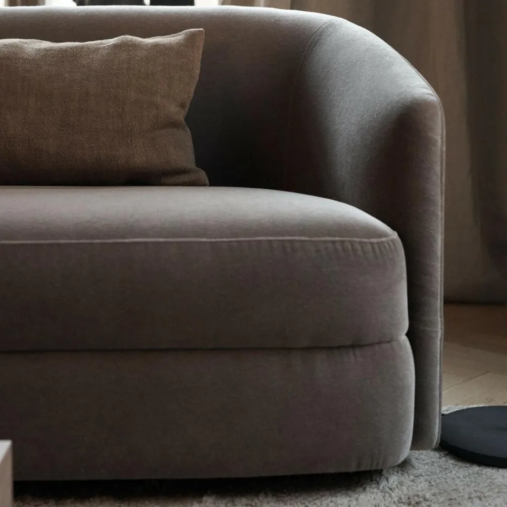 Das Covent Deep 2-Sitzer Sofa wurde vom ARDE Design Studio für die Marke New Works entworfen. Es gehört zu einer umfangreichen Serie, die auch Barhocker und Stühle umfasst. Während sich die anderen Sitzgelegenheiten auf klare Formen reduzieren lassen, charakterisieren runde Formen die Sofaserie.