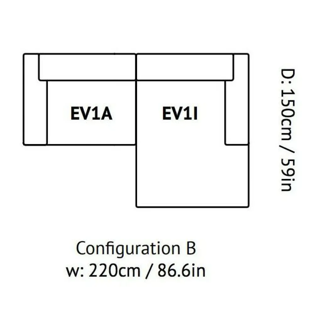 Dank der gut kombinierten Maße von B x H x T: 220 x 70 x 150 cm, einer Sitzhöhe von 42 cm und der Armlehne in Höhe von 60 cm schafft das Develius 2-Sitzer Sofa Chaiselongue rechts auch in kleinen Räumen viel Platz zum Sitzen. Das hochwertige Sitzmöbel ist aus Metall, Holz und Polyester gefertigt, strapazierfähig und elegant zugleich.