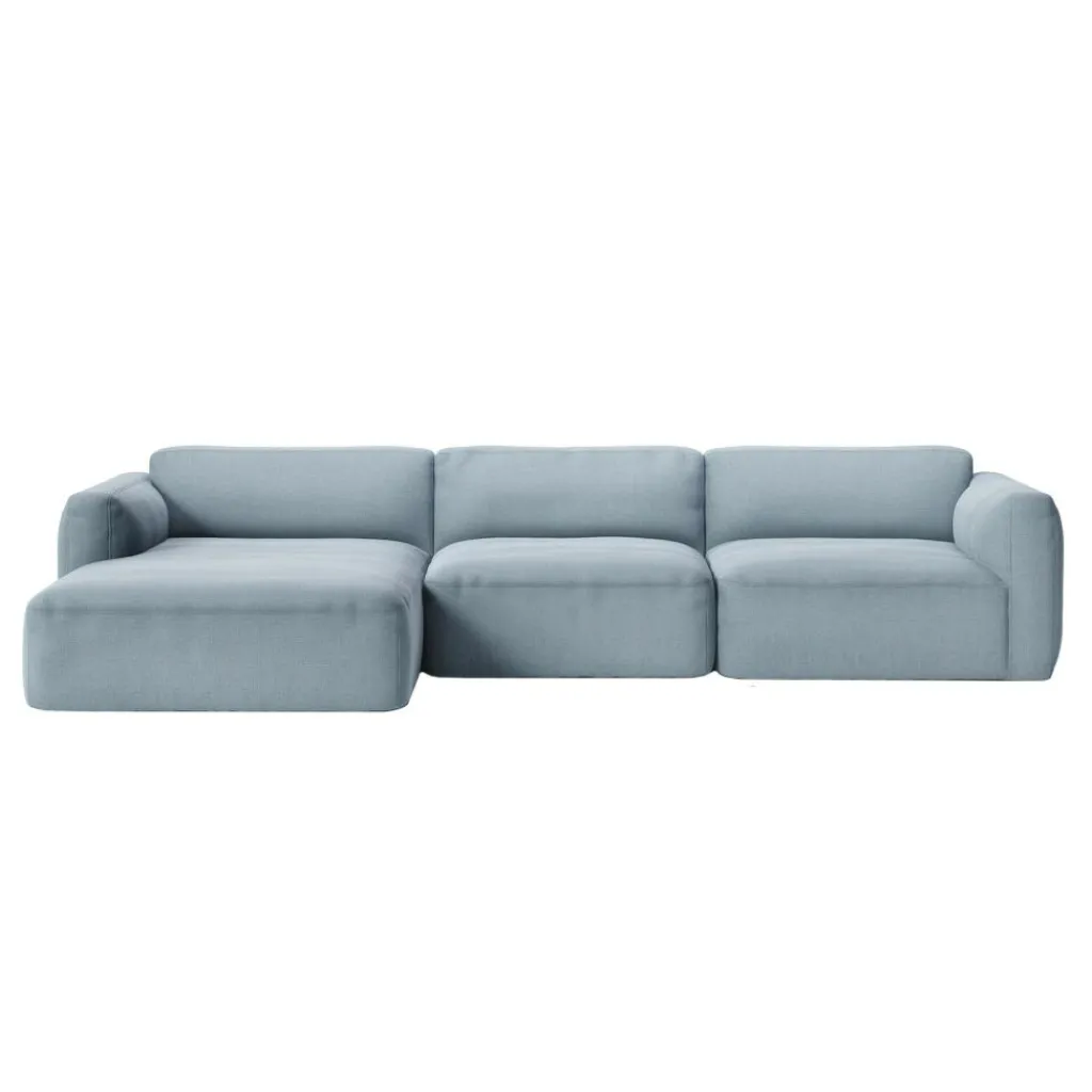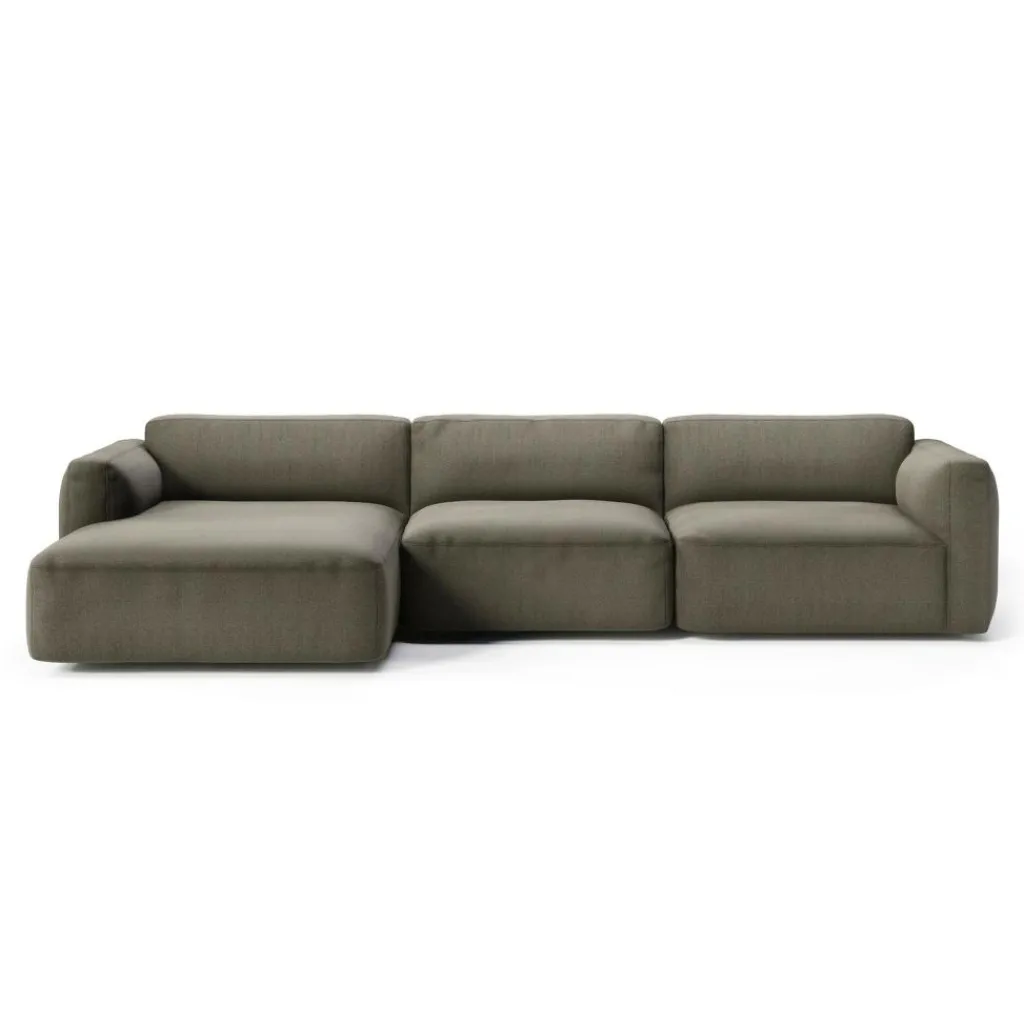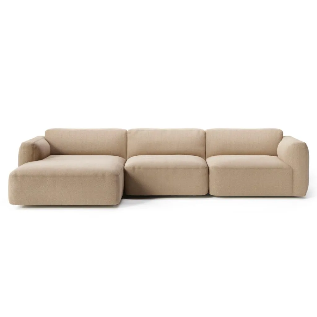Das Sofa besteht aus drei klar voneinander abgetrennten Elementen und bietet komfortabel Platz für bis zu vier Personen. Die Chaiselongue lädt zum Entspannen und Hochlegen der Beine ein und macht das Design zu einer idealen Wahl für gemütliche Stunden. Mit seinen niedrigen Lehnen fügt sich das großzügige Möbelstück elegant und unaufdringlich in verschiedene Raumkonzepte ein. Die Stofffarben verleihen dem Sofa eine dezente Eleganz und passen sich harmonisch jeder Umgebung an. Die abnehmbaren Bezüge bestehen je nach gewähltem Material aus einer Mischung von Schafwolle oder Baumwolle, Viskose, Acetat und Nylon. Für besonderen Komfort sorgt die Polsterung aus hochwertiger Polyesterwatte und HR-Schaum, die das Sofa besonders gemütlich macht. Der stabile Rahmen aus FSC®-zertifiziertem Sperrholz ist mit Canvas gepolstert und mit No-zag-Federn ausgestattet, um lang anhaltenden Komfort zu gewährleisten. Die verschiedenen Elemente des Sofas werden durch Metallbügel sicher miteinander verbunden. Das Develius Mellow 3-Sitzer Sofa mit Chaiselongue links ist sowohl für den privaten Wohnbereich als auch für Hotellounges oder öffentliche Bereiche eine ausgezeichnete Wahl.