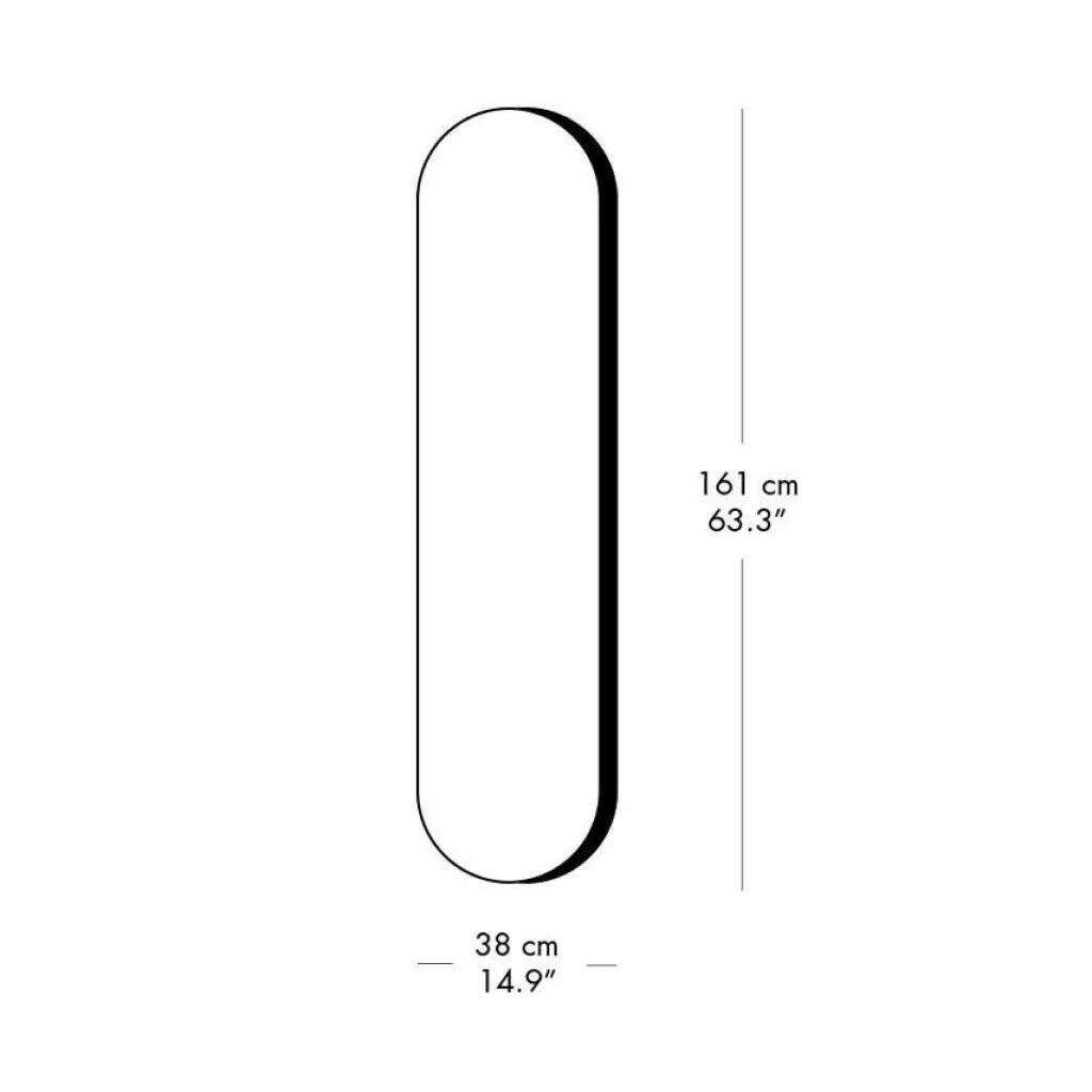 Mit einer Breite von 38 cm und einer Höhe von 161 cm fällt der Spiegel lang besonders schmal aus. Er bietet daher viele Einsatzmöglichkeiten vom Gästezimmer über den Flur bis zum Schlafzimmer. Wo auch immer Sie den Spiegel von Fritz Hansen einsetzen, er passt sich dank seines schlichten Designs und der geometrischen Formen vielen Einrichtungsstilen harmonisch an.