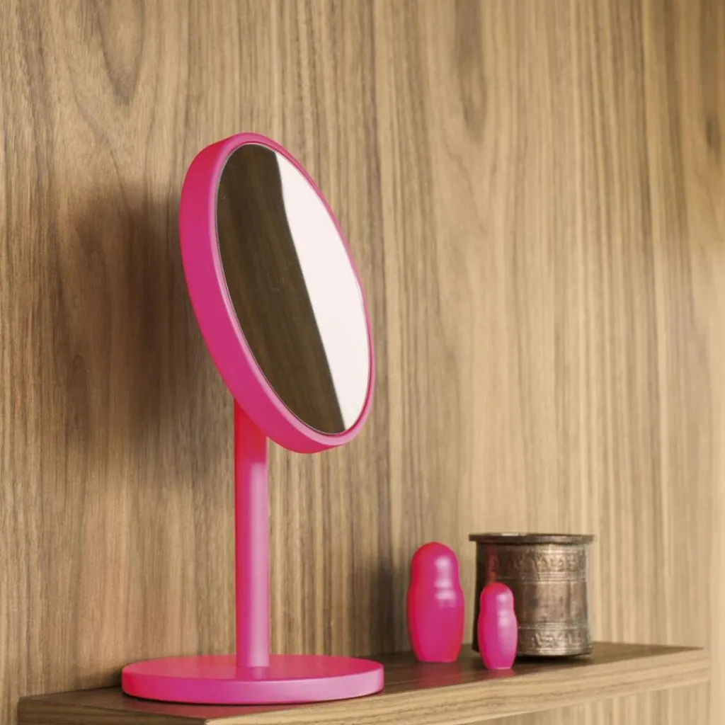 Dank eines magnetischen Kugelgelenks können Sie diesen Spiegel mühelos ausrichten und damit das vorhandene Licht so gut wie möglich nutzen. Der Standfuß sorgt für eine Spiegelhöhe von 25 cm und damit eine optimale Position des Spiegels neben einem Waschbecken oder auf einer Kommode. Der Beauty Vergrößerungsspiegel kann auch an der Wand montiert werden. Sie können ihn in den Farben Puder, Jade, Zitrusgelb und Kieselsteinbraun bestellen.