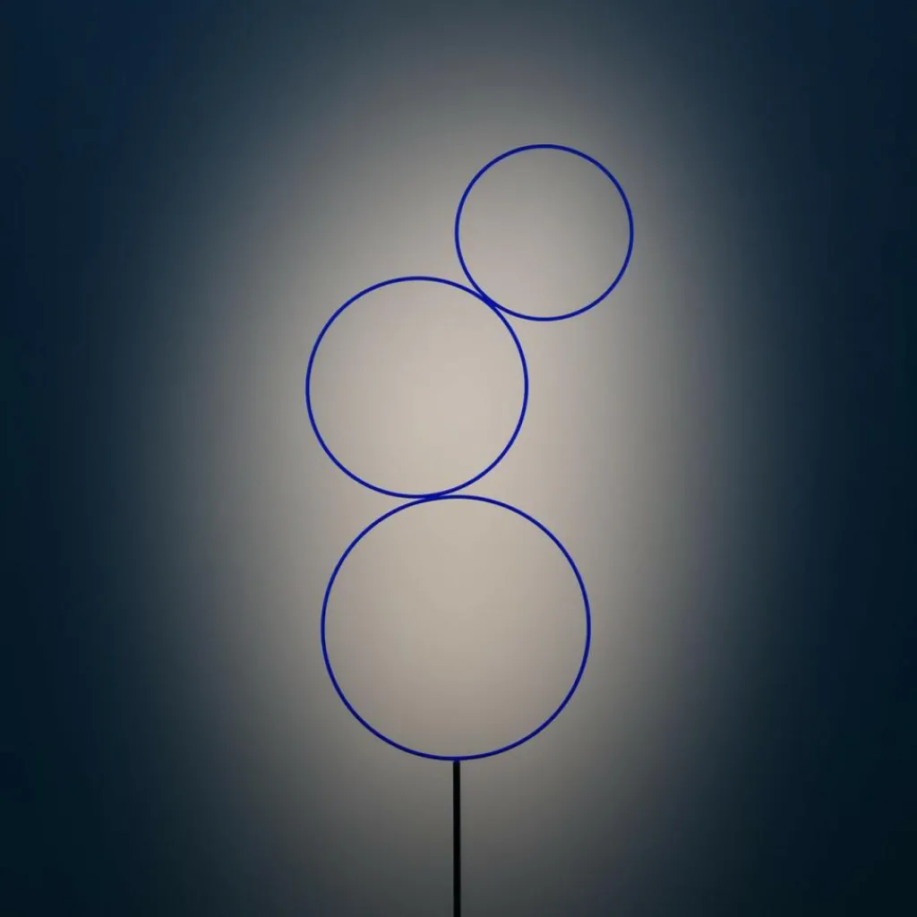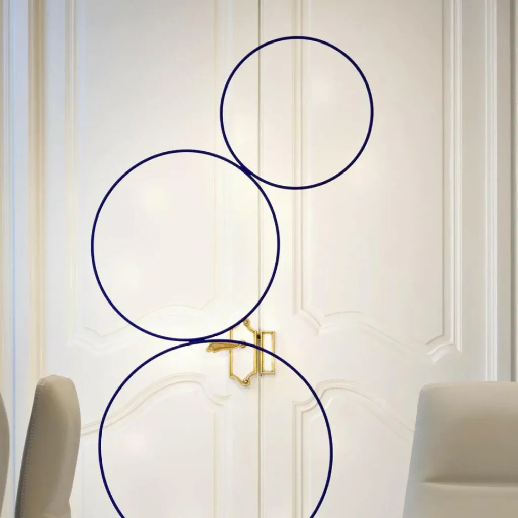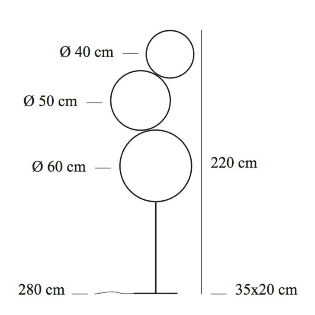 Die 220cm hohe Sorry Giotto 3 LED Stehleuchte ist betont minimalistisch im Design. Die runde Design-Leuchte besteht aus drei aufeinander „balancierenden“ Ringen mit 40, 50 und 60cm Durchmesser, die aus Kupfer gefertigt. Ein Eisensockel sorgt für die nötige Stabilität.
