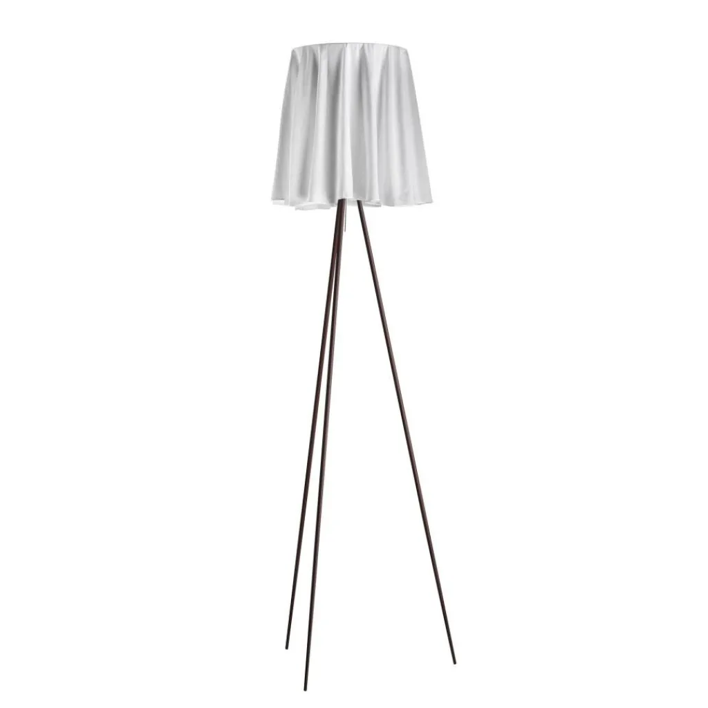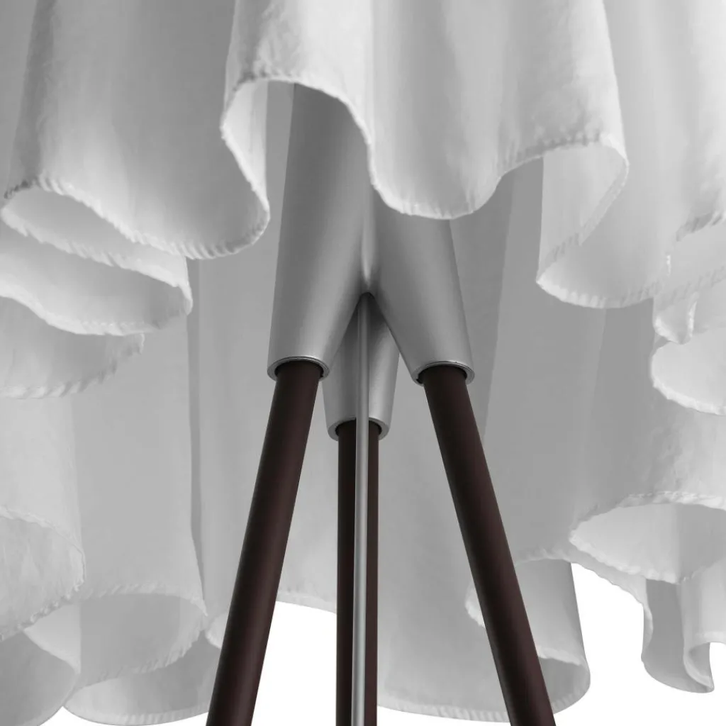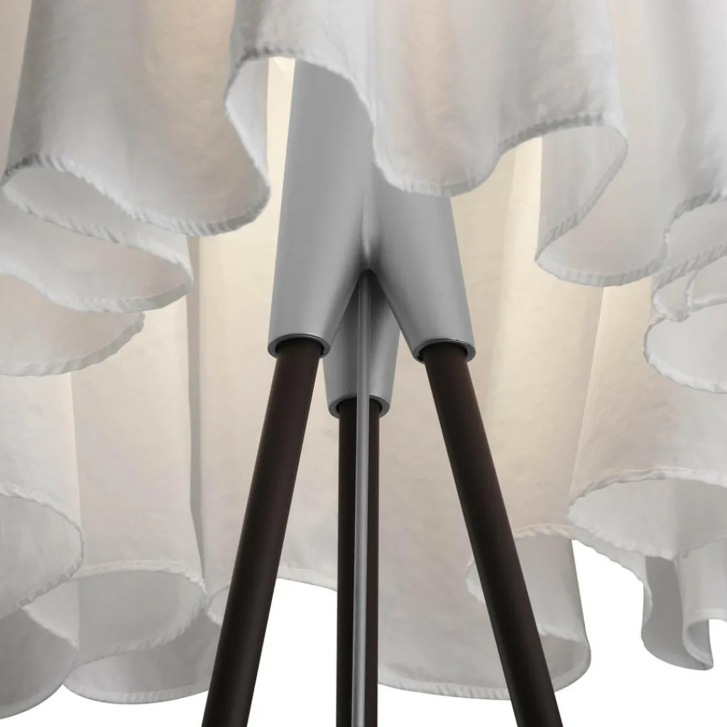 Die Rosy Angelis Stehleuchte wurde von Philippe Starck für die Marke Flos entworfen. Auf den ersten Blick könnte man das Modell mit einem Stehtisch verwechseln, der mit einem fließenden Tischtuch bedeckt ist.