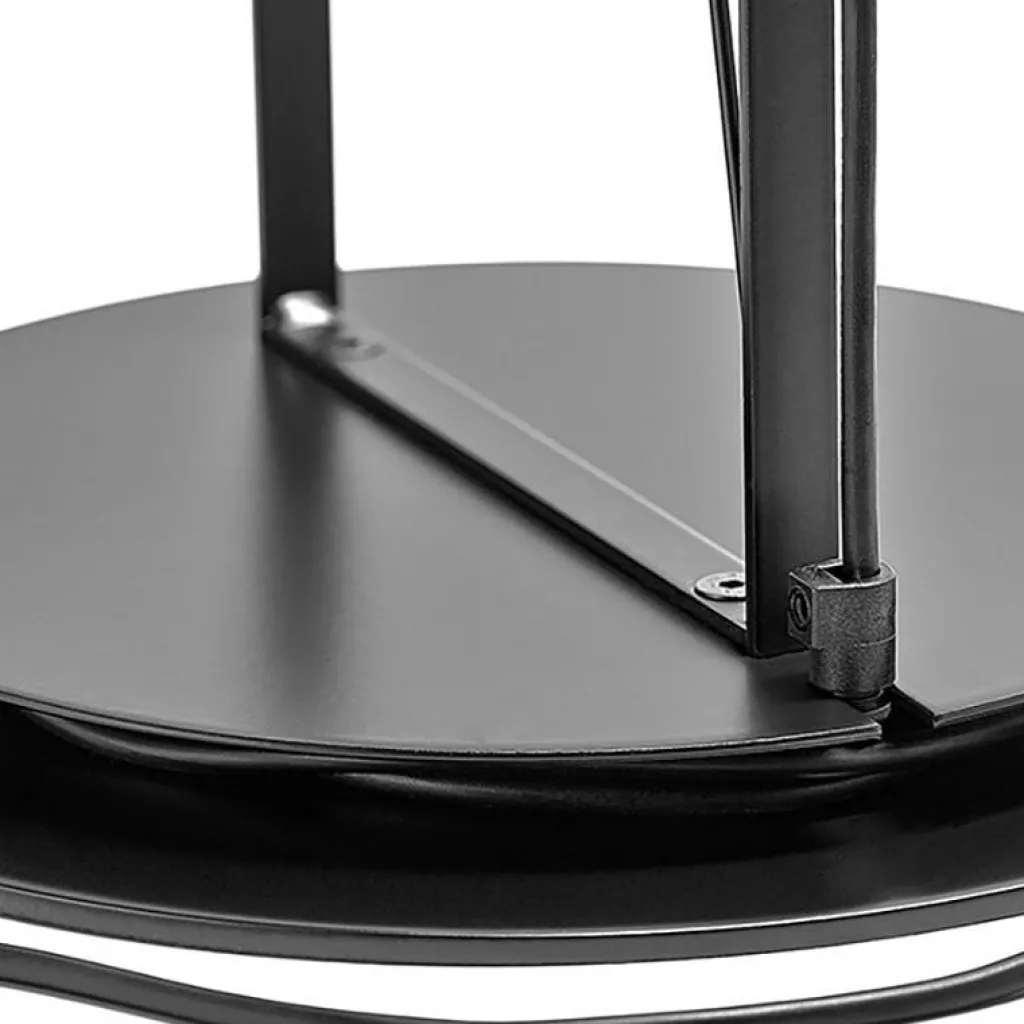 Hinter dem scheinbar schlichten Entwurf der Opus Stehleuchte verbirgt sich ausgeklügelte Technik. Der schlichte Leuchtenkopf, der wie ein Scheinwerfer aussieht, kann um 240° gedreht werden. Somit kann die Opus Stehleuchte als Zonen- oder Objektbeleuchtung sowie als Deckenfluter verwendet werden. Sie strahlt diffuses Licht aus. Mit dem im Kabel integrierten Bedienelement lässt sich die Leuchte ein- und ausschalten sowie dimmen. Somit ist es möglich, die Helligkeit des Leuchtmittels an die persönliche Stimmung anzupassen. Das Gestell besteht aus einer runden Basis und zwei dünnen Stäben. Das daran befestigte Stromkabel ist deutlich sichtbar. Das Kabel kann an einer in der Fußplatte integrierten Rille bequem aufgerollt werden. Die Leuchte ist in verschiedenen Farben zu haben. Hergestellt wird sie aus Metall. Das flexible Modell passt neben die Sofalandschaft oder den Loungesessel zu Hause, in Büros, Wartezimmer und an viele weitere Orte.