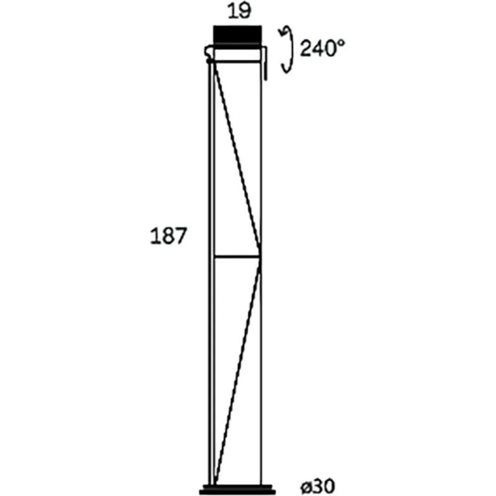 Die Basis der Opus Stehleuchte hat einen Durchmesser von 30 cm. Der Diffusor ist 19 cm breit. Die Höhe beträgt 187 cm. Die Leuchte benötigt ein Leuchtmittel mit einer R7-Fassung.