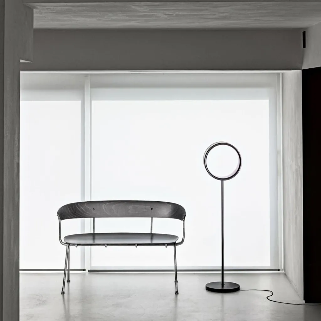 Die Lost LED Stehleuchte wurde von Bogliato Traverso für die Marke Magis entworfen. Sie gehört zu einer Serie von ausgefallenen Leuchten, die mit ihrem puristischen Design beeindrucken. Die italienischen Designer reduzieren die klassische Leuchtenform auf einen einfachen Ring, dessen Zentrum die Leere beschreibt. Damit bestechen die Lost-Leuchten ebenso mit einem poetischen wie mit ihrem skulpturalen Charakter.