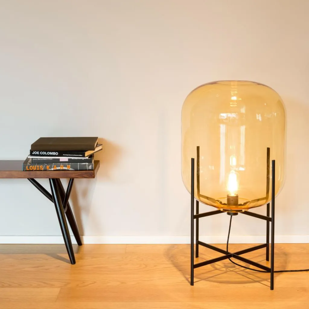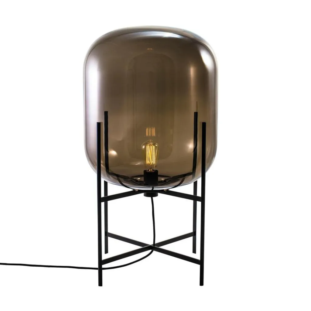 Ebenso wie die geschichtsträchtigen Bauten besteht auch die Oda Medium Stehleuchte Gestell schwarz aus einem zarten Metallgestell, das aus pulverbeschichtetem Stahl gefertigt wurde. Auf den vier Füßen ist ein ballonförmiger Leuchtenschirm befestigt. Die insgesamt 85 cm hohe Leuchte wurde in kunstvoller Handarbeit gefertigt. Der mundgeblasene Glaskörper, in dem sich das Leuchtmittel befindet, wird zum Kunstobjekt in jedem Raum. Warmes Licht strahlt aus dem Leuchtenschirm mit 45 cm Durchmesser in alle Richtungen aus. Somit wird die Oda Medium Stehleuchte Gestell schwarz zum sehenswerten Designerstück im Wohnzimmer, in der Bibliothek oder in jedem anderen Raum.