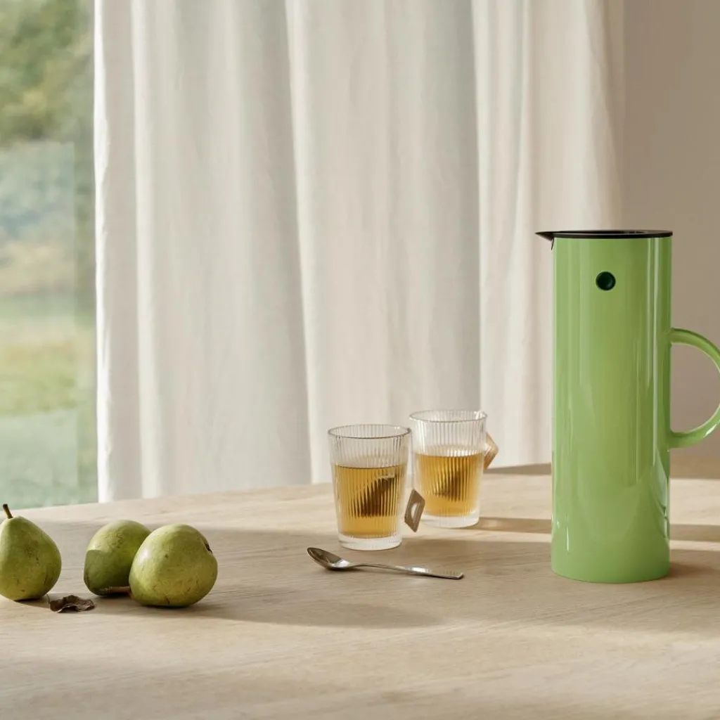 Zeitlos und funktional ist die EM77 Isolierkanne 1L ein skandinavischer Klassiker. Das Design ist dabei so langlebig wie die Kanne selbst. Sie besticht durch eine zylindrische Form mit halbrundem Griff und eine hochwertige Verarbeitung. Hergestellt wird das Modell aus BPA- und phthalatfreiem Kunststoff. Die Kanne ist mit einem doppelwandigen Glaseinsatz versehen, der eine hohe Isolierleistung gewährleistet und den Inhalt stundenlang wärmt oder kühlt. Ihr einzigartiger Kippverschluss vereinfacht das Einschenken und sorgt dafür, dass nichts tropft.