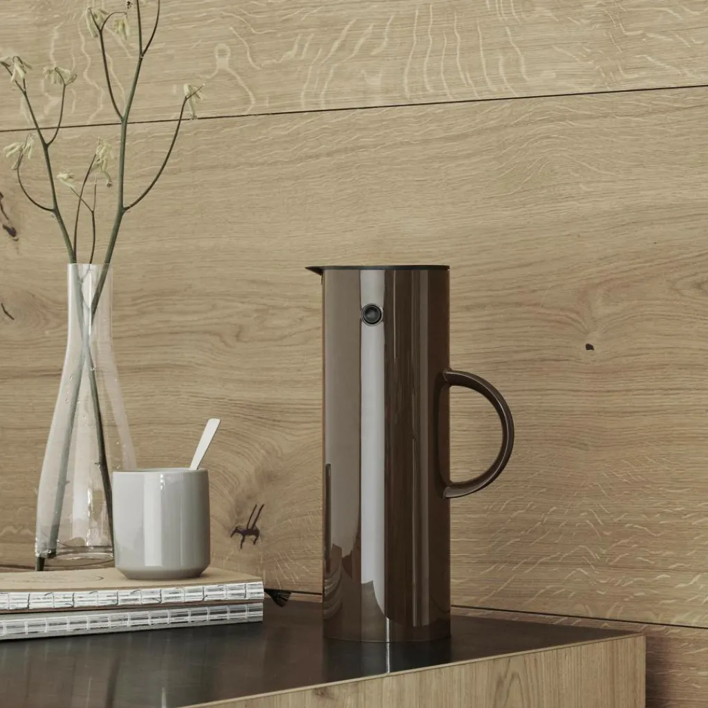 Die EM77 Isolierkanne 1L wurde von Erik Magnussen für die Marke Stelton entworfen. Der Name dieser dänischen Stilikone setzt sich aus den Initialen des Designers und ihrem Entwurfsjahr zusammen. Die Isolierkanne ist mit dem ID-Preis 1977, dem iF Design Award 1992 und dem Klassikerprisen 2007 ausgezeichnet und in Designmuseen auf der ganzen Welt zu bewundern. Gleichzeitig ist sie ein begehrter Haushaltsgegenstand für die Küche.