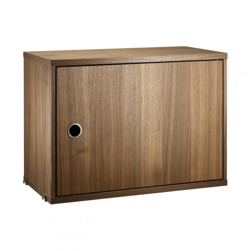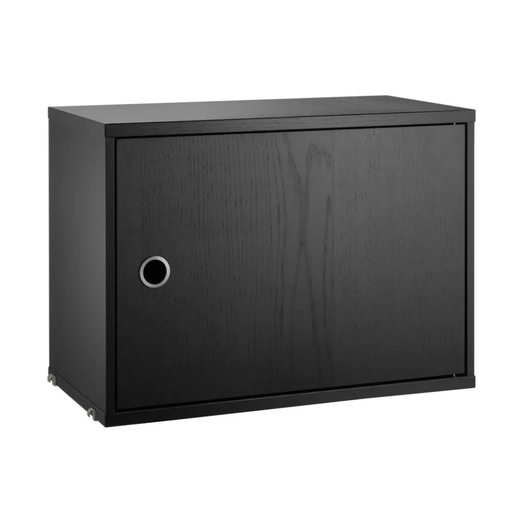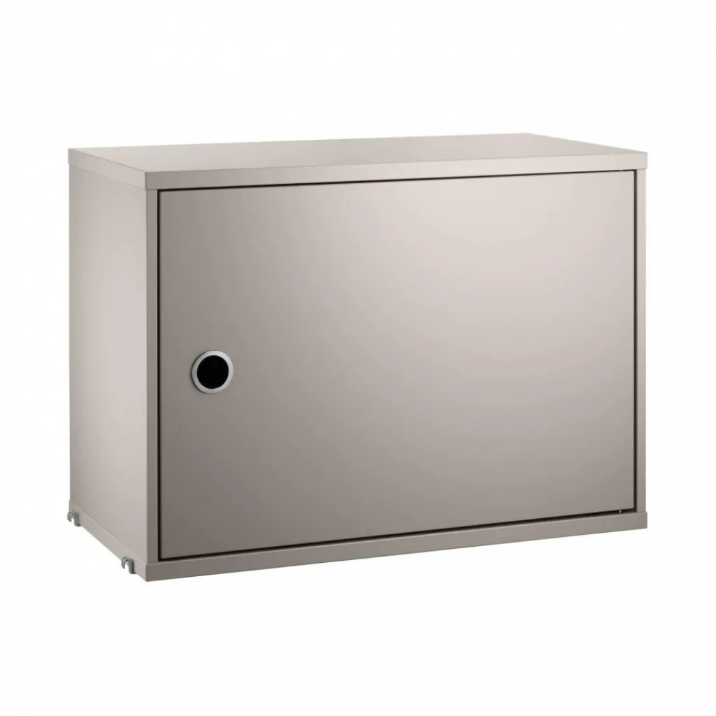 Das String System Schrankelement mit Schwenktür 58x42x30cm ist 58 cm breit und 30 cm tief. Die Höhe beträgt 42 cm. Das Schrankelement erreicht ein Gewicht von 11,2 kg. Es kann mit maximal 25 kg belastet werden und hat einen Einlegeboden. Das schlichte Schranksystem harmoniert mit jedem Einrichtungsstil: Es kann mit modernen oder traditionellen Möbeln kombiniert werden.