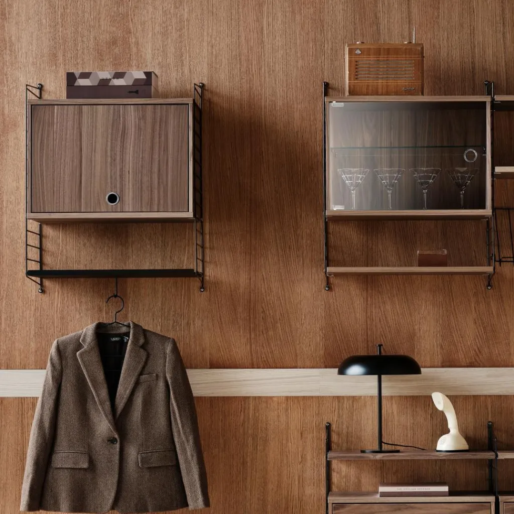 Charakteristisch für die String System Vitrine mit Glasschwingtür 58x30cm sind ihre Funktionalität und ihre zeitlose Formsprache. Das Design stammt aus dem Jahr 1949 und hat seitdem nichts von der Kraft seiner schlichten Ästhetik verloren. Der rechteckige Vitrinenschrank bietet nicht nur Stauraum. Dank seiner Glasschwingtür mit rundem Griff lassen sich Lieblingsstücke auch gekonnt in Szene setzen. Dazu ist das Modell mit einem gläsernen, leicht versetzbaren Einlegebogen ausgestattet. Die Glastür, die durch eine runde Öffnung in der Tür geöffnet wird, kann ebenfalls flexibel an jeder Seite des Schranks angebracht werden. Die Vitrine ist in verschiedenen farblichen Ausführungen erhältlich. Ihr Korpus ist je nach Farbe aus furnierter Spanplatte oder lackiertem MDF hergestellt. Die Verwendung von wasserbasiertem Lack macht die Vitrine zu einer nachhaltigen Wahl.