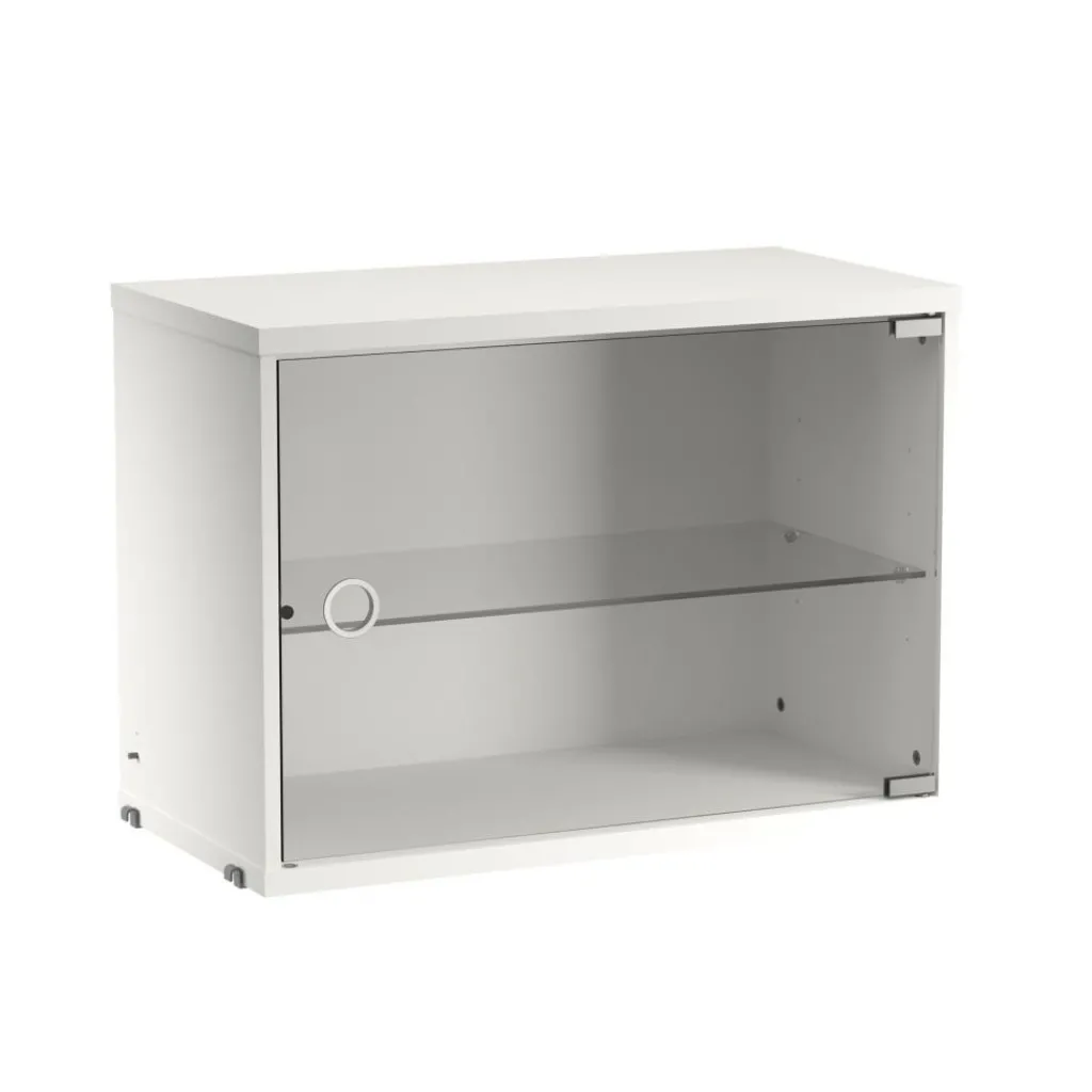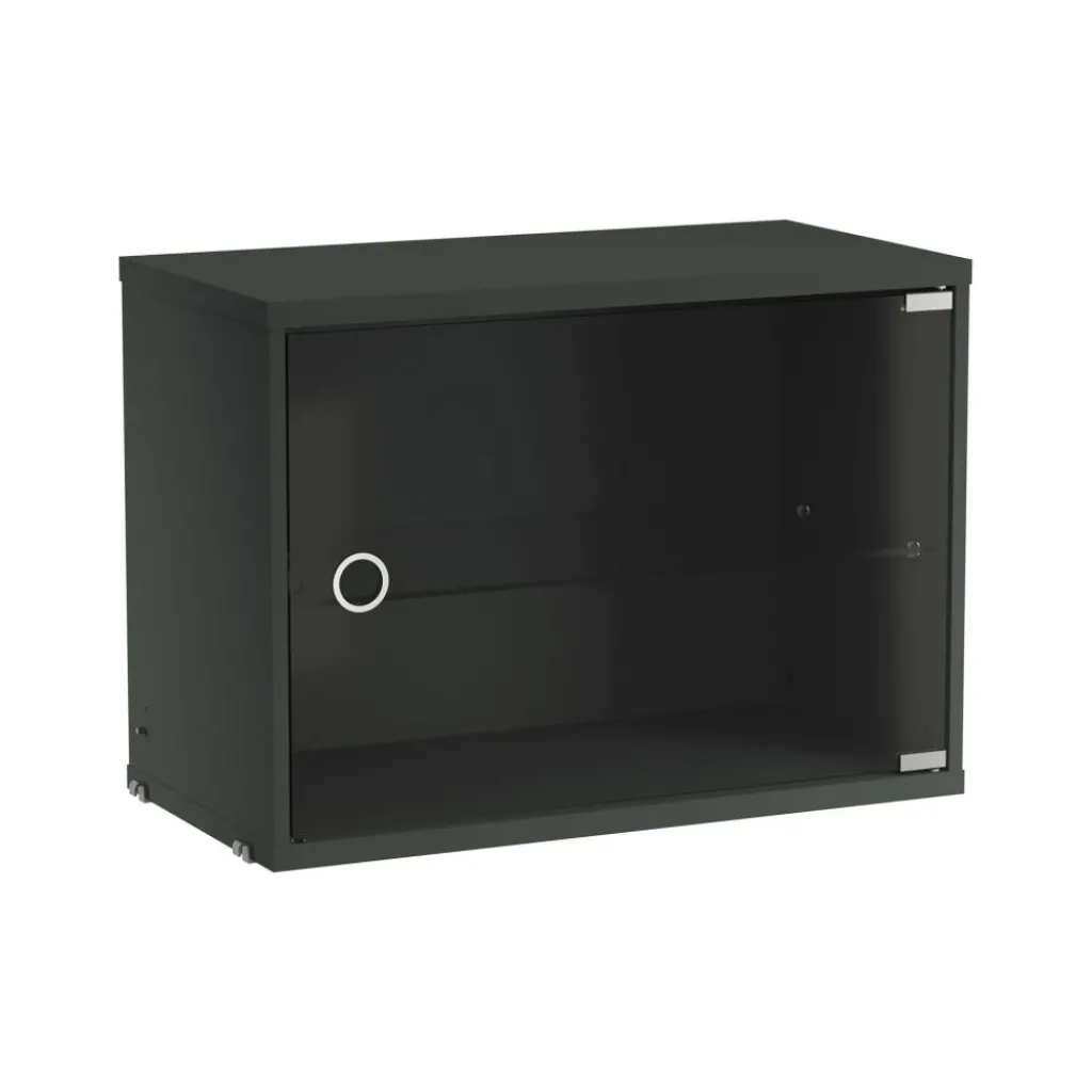 Die String System Vitrine mit Glasschwingtür 58x30cm wurde von Nisse Strinning für die Marke String Furniture entworfen. Das praktische Schrankelement ist Teil eines umfassenden modularen Regalsystems, das der bekannte schwedische Architekt und Designer als vielseitige Stauraummöglichkeit entwickelte.