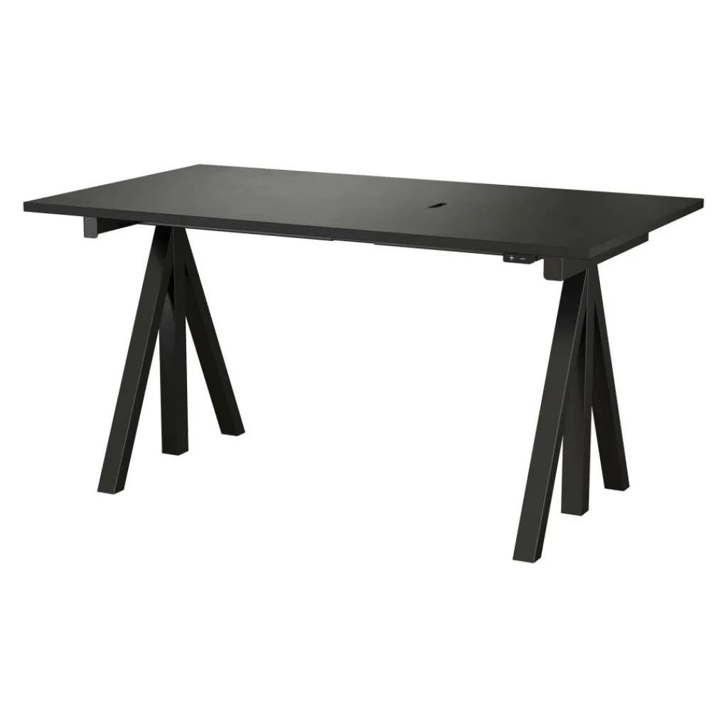 Der String Works Schreibtisch höhenverstellbar Gestell schwarz wurde von Nisse Strinning für die Marke String entworfen. Er gehört einer Kollektion an, die ein modernes Aussehen mit praktischen Funktionen verbindet. So eignen sich die String-Works-Modelle genauso fürs Büro wie fürs Arbeitszimmer.