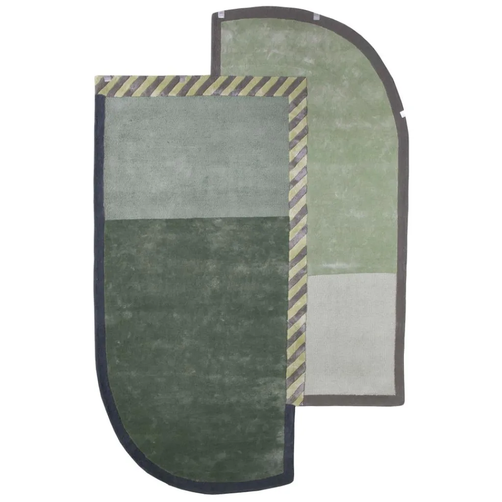 Auf den ersten Blick könnten es zwei Teppiche sein, die versetzt übereinandergelegt sind und so einen extravaganten Bodenbelag bilden. Darauf lassen das Design und die Farbgebung schließen, die die Umrahmung zweier Flächen andeuten. Dabei besteht der Traffiq Teppich 160x260cm aus einem einzigen Stück, dessen Umriss von der herkömmlichen Rechteckform abweicht. Je zwei weit eingeschnittene und stark abgerundete Ecken liegen einander schräg gegenüber und unterstreichen die asymmetrische Ästhetik dieses Designteppichs. Aus feiner neuseeländischer Wolle geknüpft, besticht der Traffiq Teppich 160x260cm darüber hinaus mit einer natürlichen Weichheit und einer warmen, flauschigen Haptik. Damit versprüht der einladende Bodenbelag eine luxuriöse Atmosphäre. Seinem hochwertigen Material verdankt er eine strapazierfähige Langlebigkeit. Er ist ein einzigartiges Wohnaccessoire, das sich eignet, um einen gemütlichen Bereich im Wohnzimmer zu markieren. Genauso gut passt er neben das Bett im Schlafzimmer oder vor das Bad.