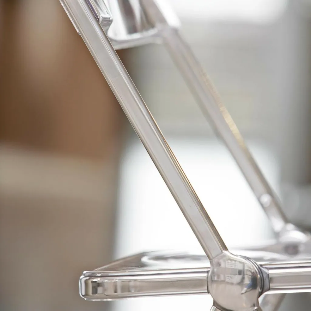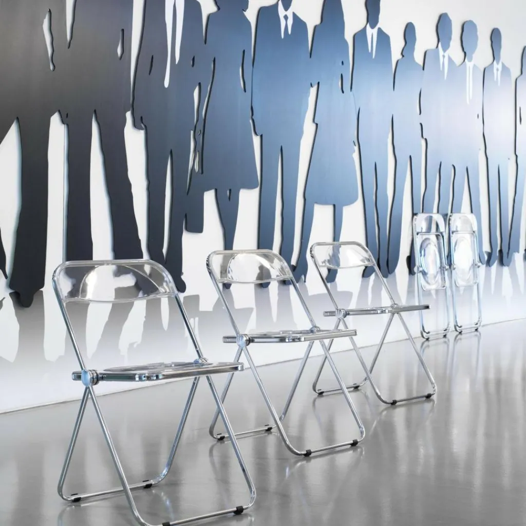 Mit dem Klappstuhl Plia hat der italienische Designer Giancarlo Piretti Designgeschichte geschrieben! Seine Entwicklung des 3-Scheiben-Gelenks mit ausgeklügelter, flacher Klappmechanik ebneten dem transparenten klappbaren Stuhl von Anonima Castelli den Weg zum internationalen Kultobjekt.