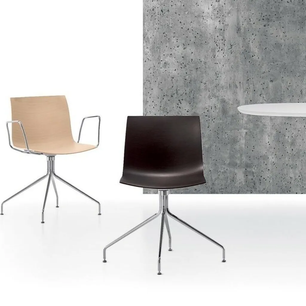 Eine völlig neue, bessere Auslegung des Catifa Designs, das sich in jeder Situation zuhause fühlt: zuhause, im Büro oder im vertraglichen Umfeld. Die sich ständig entwickelnde Catifa 46 Kollektion umfasst zahlreiche Modelle und Varianten. Die Sitzschale gibt es aus doppelt gewölbtem Schichtholz, ein- oder zweifarbig aus Polypropylen und kann auf Anfrage auch mit Leder, Kunstleder, Textil oder mit Wildleder bepolstert geliefert werden. Der Fuß ist verchromt und erhältlich in einer Reihe von Varianten: Vierfuß, Drehfußgestell mit oder ohne Rollen, Kufen oder Sternfuß.