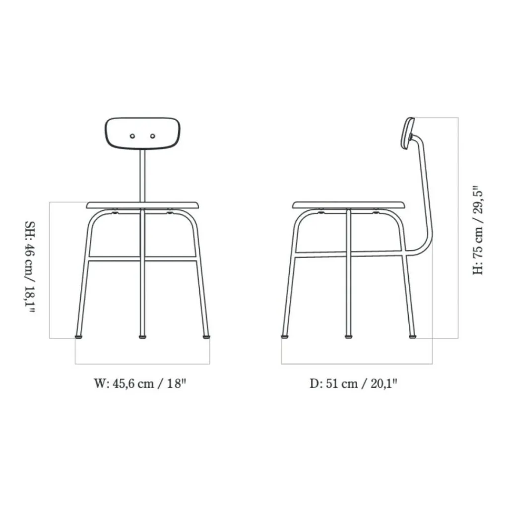 Der Afteroom Stuhl wurde von Afteroom für die Marke Audo entworfen. Er gehört zur gleichnamigen Afteroom-Kollektion des Designstudios aus Stockholm, die unter anderem Esszimmerstühle und Barhocker umfasst.