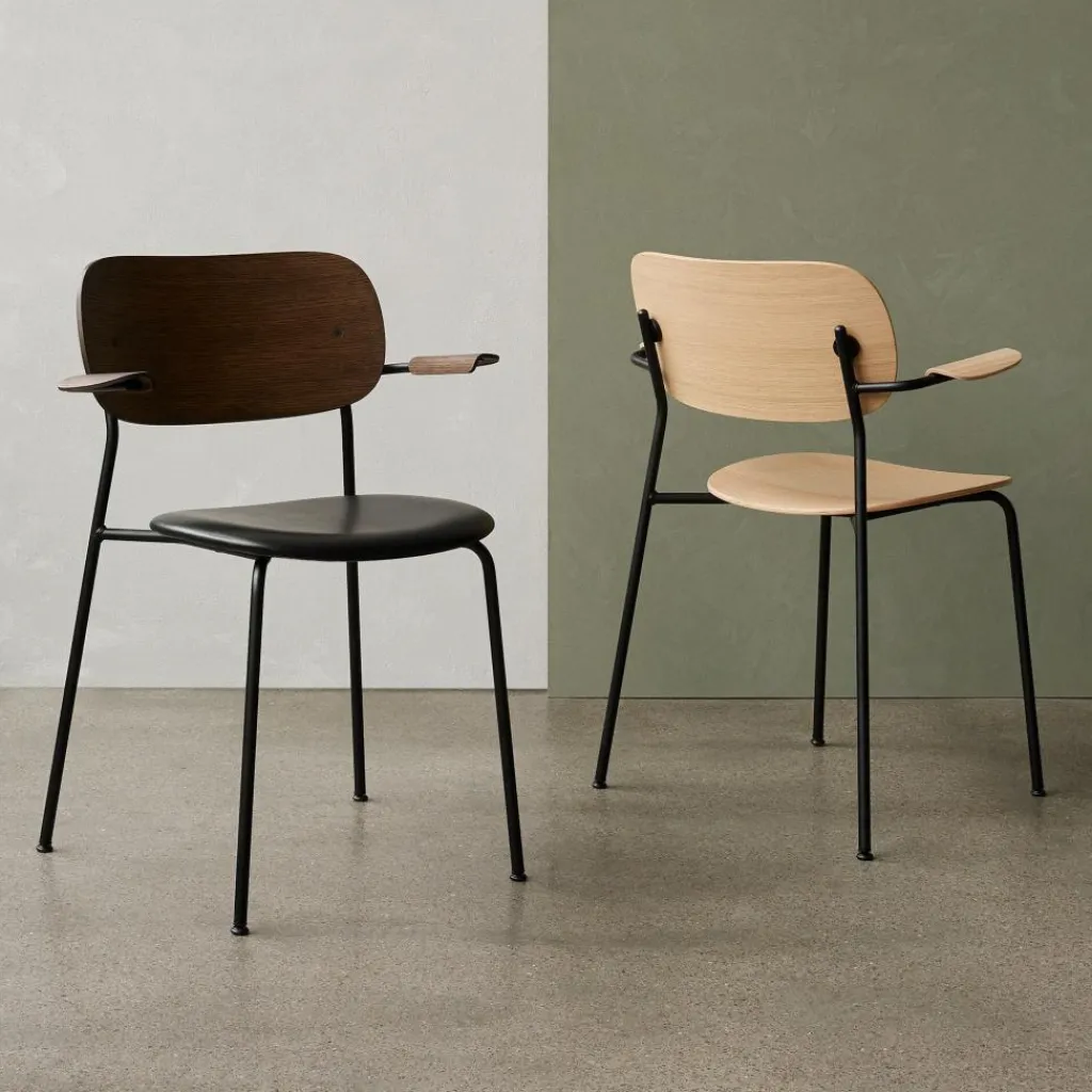 Der Co Dining Armlehnstuhl Leder wurde von Norm Architects und The Office Group für die Marke Audo entworfen, sein Design erinnert an die Klassiker der frühen Moderne. Gleichzeitig sorgen innovative Materialien und modernste Fertigungsmethoden dafür, dass dieser Stuhl außergewöhnliche Eigenschaften aufweist. Dazu zählt beispielsweise die hohe Stapelbarkeit, denn Sie können bis zu 15 Stühle zu einem kompakten Turm aufeinander stapeln. Dies ist besonders für Restaurants und Veranstaltungsräume, aber auch für Privatpersonen von großem Vorteil.