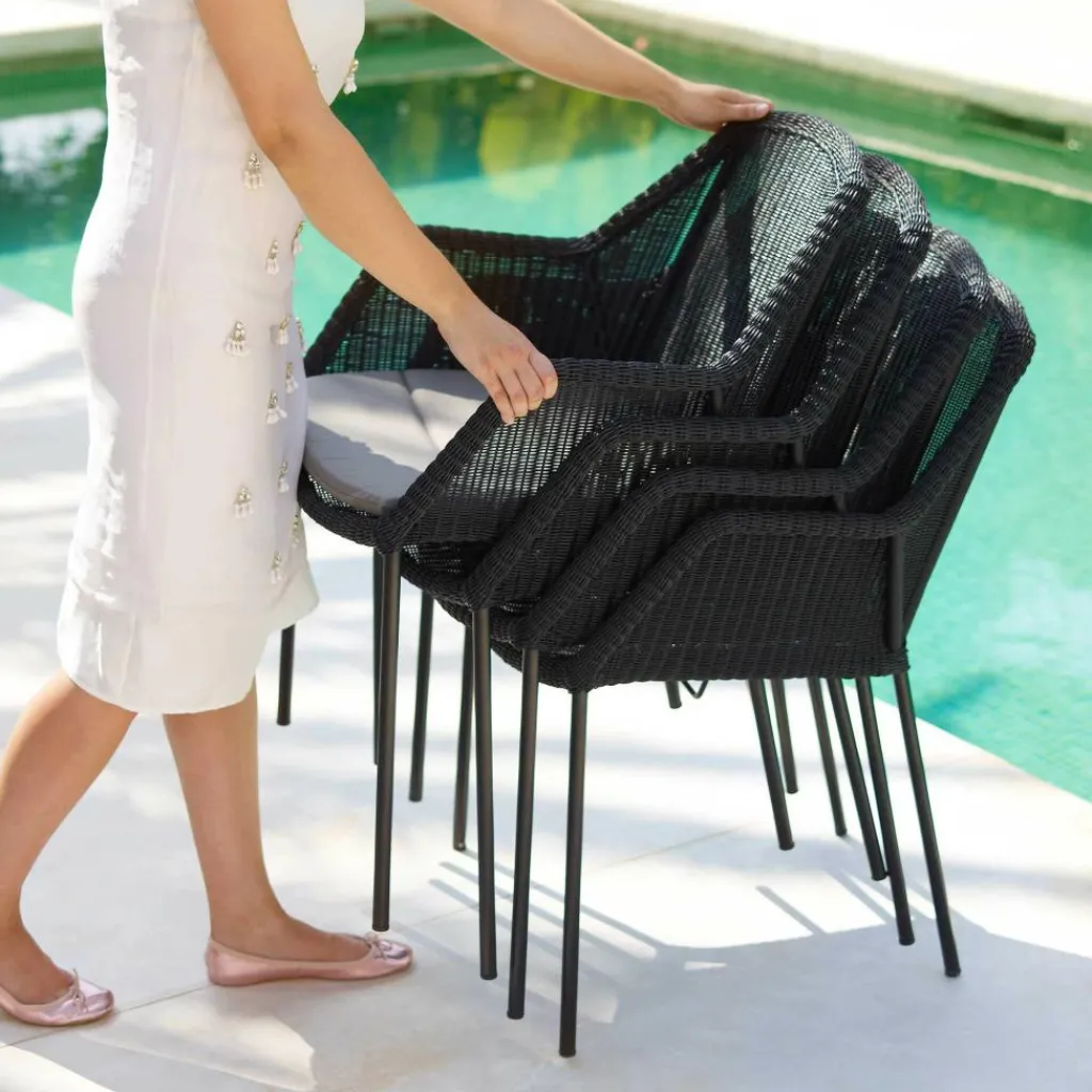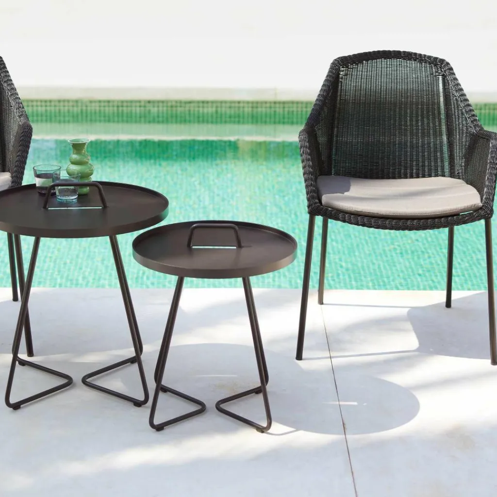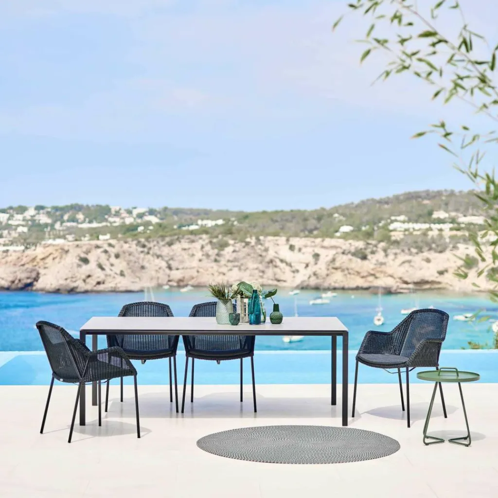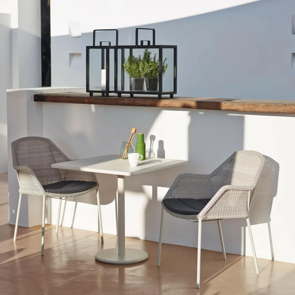 Der grazile Breeze Gartenarmlehnstuhl wurde von dem dänischen Designerduo Christina Strand und Niels Hvass exklusiv für die Marke Cane-Line entworfen. Nach ihrem Studium an der Danske Designskole gründeten Strand und Hvass ihr Atelier, wo sie seit 1998 hochwertige Möbel entwickeln. Die Entwürfe ihrer schlicht anmutenden Möbelstücke orientieren sich am Nutzen für den Konsumenten und sind tief in der skandinavischen Kultur verwurzelt. Dies entspricht dem Motto „Life made comfortable“ der ebenfalls aus Dänemark stammenden Marke Cane-Line, welche bereits seit 30 Jahren funktional-komfortable Produkte herstellt.