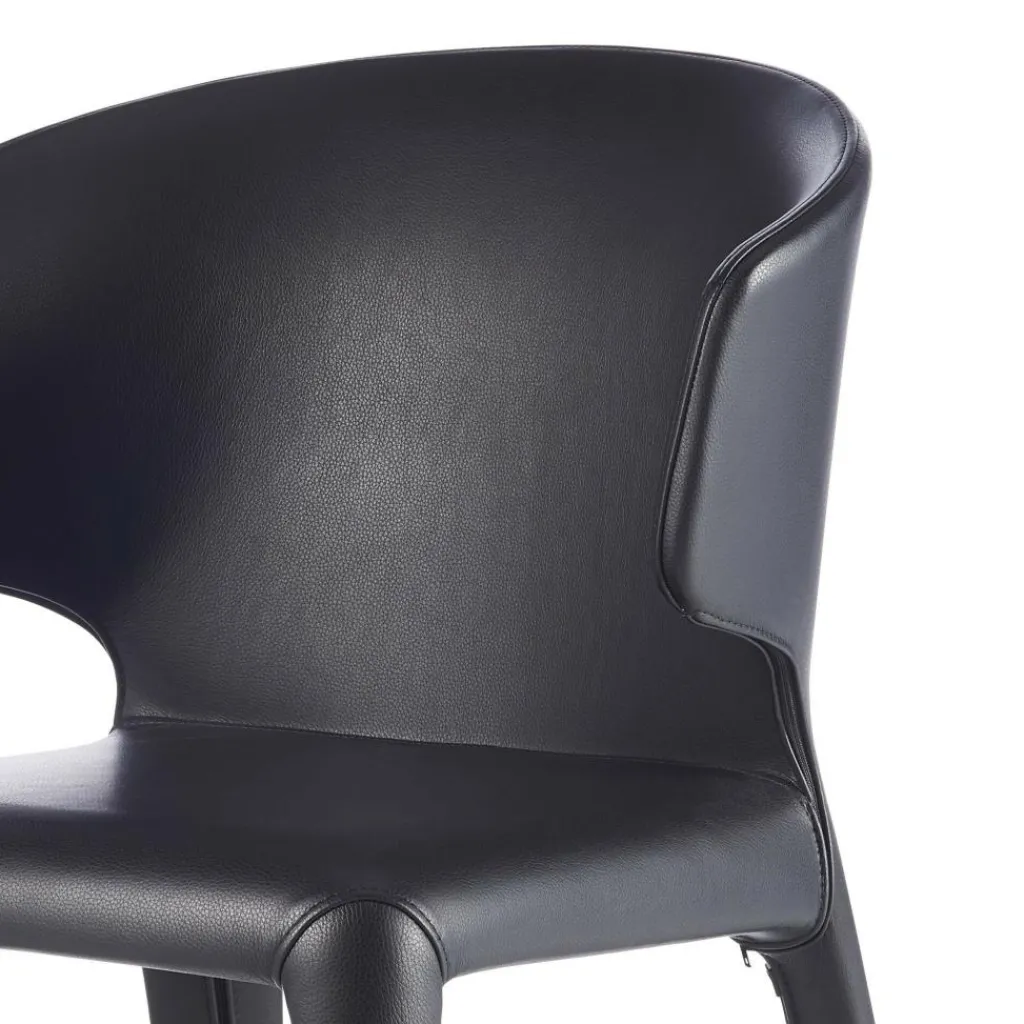 Die Hola-Familie entstand in den Jahren 2003 bis 2006 mit dem Anspruch, Sitzgelegenheiten zu schaffen, die in jedem Umfeld maximalen Sitzkomfort bieten. Darüber hinaus ist der Hola Armlehnstuhl wegen seiner sanft geschwungenen Form ein richtiger Blickfang. Die gebogene Rückenlehne rahmt den Körper ein und trägt maßgeblich zum erstklassigen Sitzkomfort bei. Ein weiteres Markenzeichen sind die weit ausgestellten Hinterbeine. Der im modernen Stil entworfene Hola Armlehnstuhl ist robust und langlebig. Dafür sorgt ein stabiler Rahmen aus Stahlrohr. Der Kern der Sitzfläche und Rückenlehne ist aus Multischicht-Pappelsperrholz gefertigt. Darüber ist eine Schicht aus Polyurethanschaum befestigt. Der edle Lederbezug verleiht dem Hola Armlehnstuhl eine elegante Optik. Zur Schonung empfindlicher Böden stehen die vier Beine auf niedrigen Kunststoffnoppen.